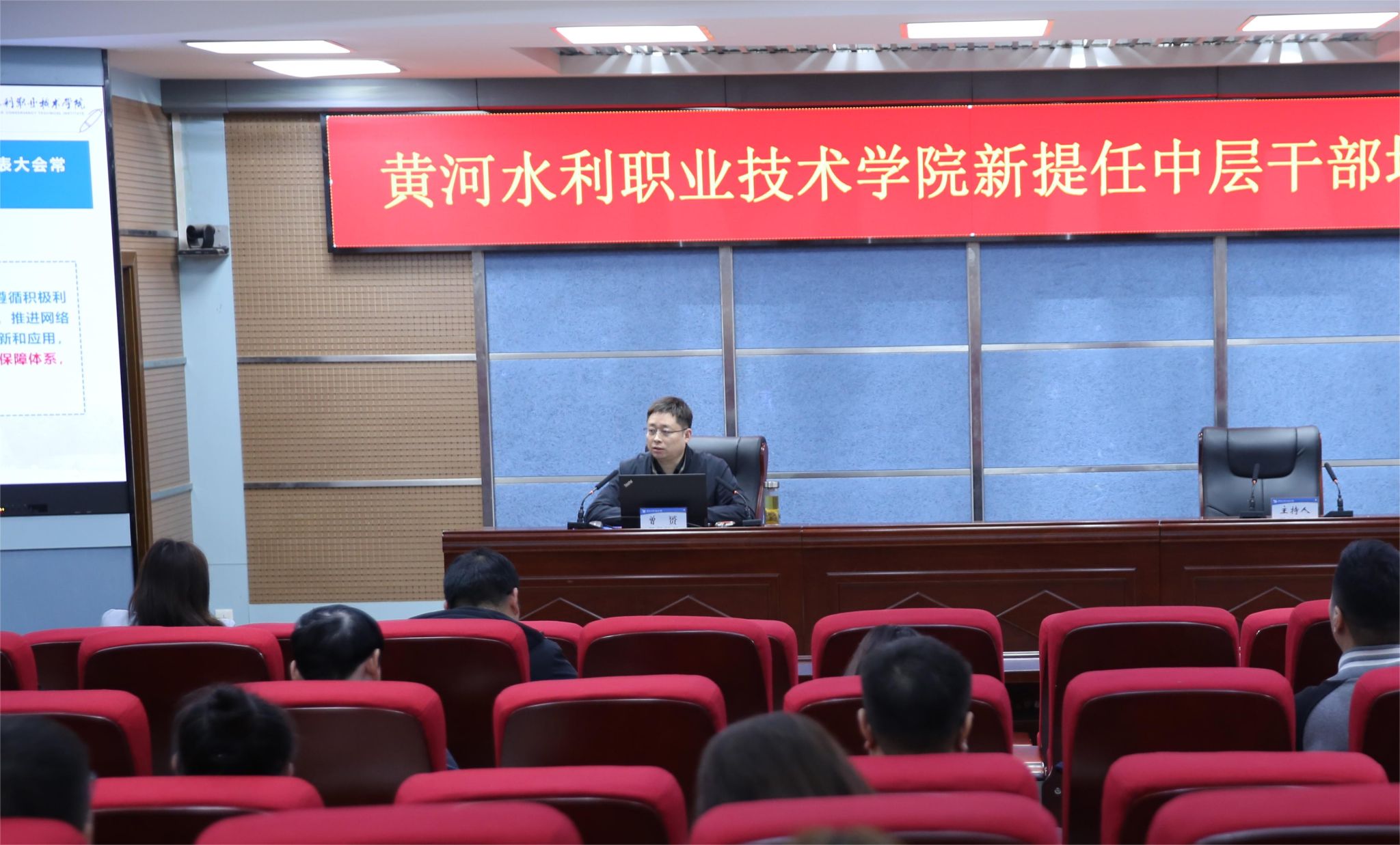 培训期间,河南省委党校王志立教授作了《转变工作作风 提高干部履职能力》专题报告,河南大学新闻与传播学院院长王鹏飞作了《融媒时代的媒介变革与舆情引导》专题报告。党委委员、组织部部长马晓慧及信息化管理办公室主任曾赟分别围绕民族宗教和信息化等主题,着眼工作的重点难点,深入解读相关制度规定,引导新提任中层干部更好地适应岗位和学校事业发展需要。
