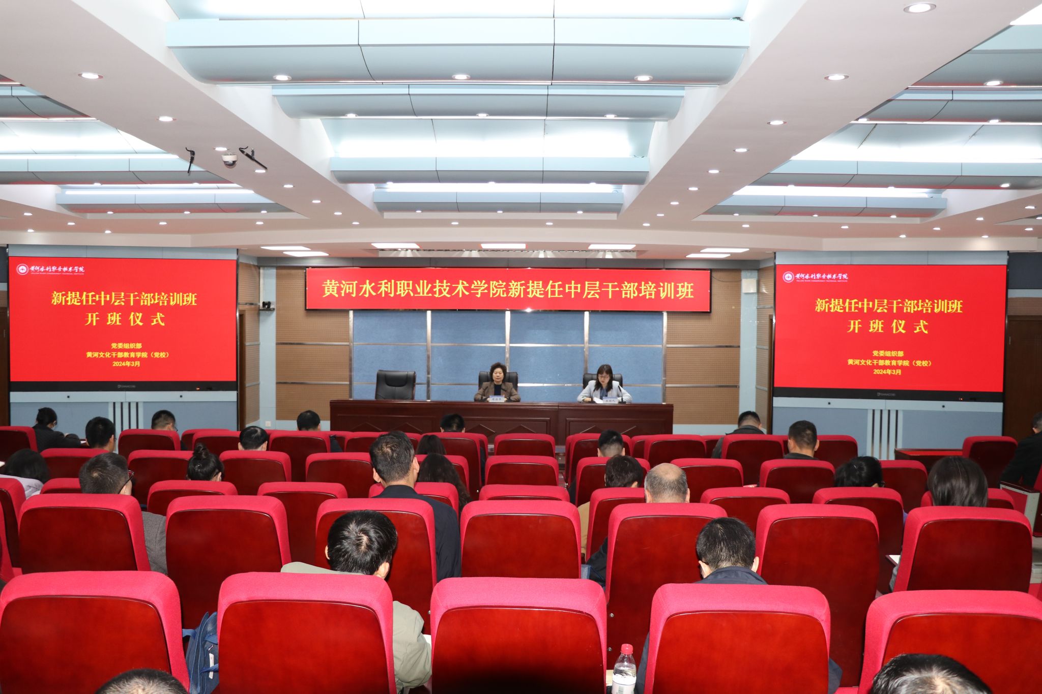 按照学校2024年党员干部教育培训计划总体安排,为进一步提升新提任中层干部的政治素质、责任意识和履职能力,3月15日,我校在三号实训馆学术报告厅举行了新提任中层干部培训班开班仪式。校党委书记周保平出席开班仪式并作动员讲话,72名新提任中层干部参加学习培训。开班仪式由党委委员、组织部部长马晓慧主持。