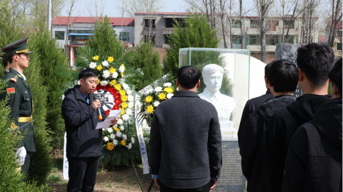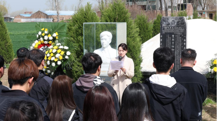 今年是我校优秀校友吴祖泰烈士牺牲64周年,为缅怀先烈,继承和弘扬红旗渠精神,我校于3月28日组织前往原阳县白庙村吴祖泰烈士墓地举行祭奠活动。原阳县退役军人事务局、原阳县团委负责同志,白庙村村干部,吴祖泰亲属,村民代表以及我校团委与学生代表共60余人参加活动。