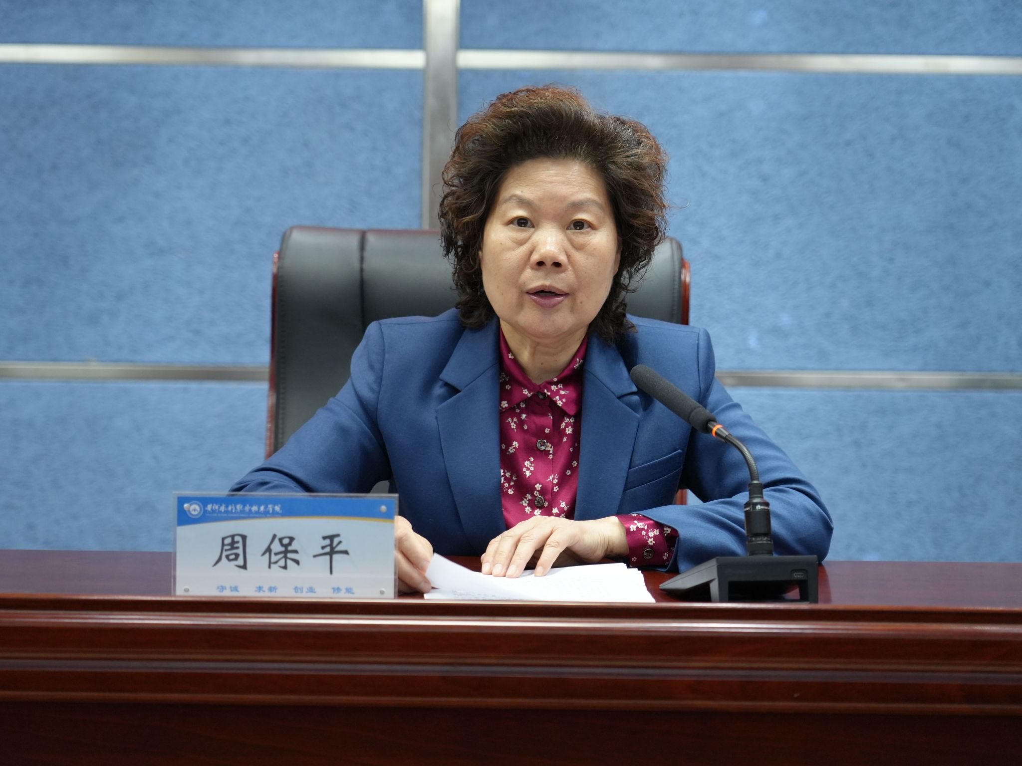 党委书记周保平讲话。她指出,习近平总书记关于党的建设、党的自我革命的重要思想,为我们纵深推进全面从严治党、推进新时代党的建设新的伟大工程指明了方向、提供了根本遵循。学校党委深入学习贯彻习近平新时代中国特色社会主义思想,牢牢把握全面贯彻落实党的二十大精神,牢牢把握全面从严治党战略方针,着力强化政治统领、思想引领,扛稳抓牢管党治党政治责任,坚持严的基调、完善严的措施、浓厚严的氛围,以管党治党全面从严带动全校全面发展取得了一系列新成效。