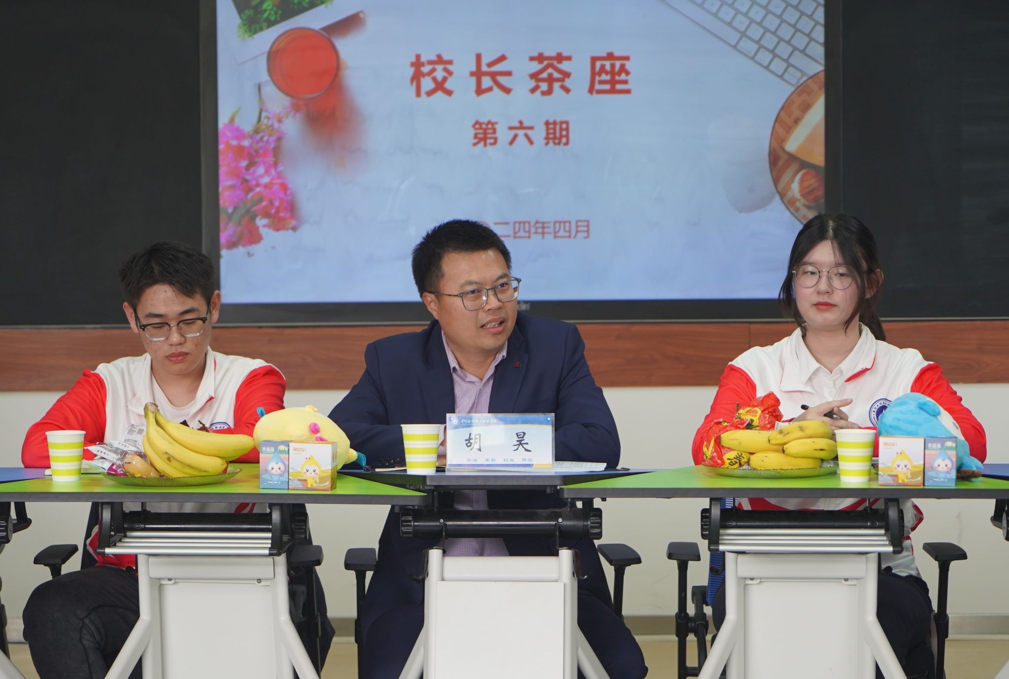 4月11日,我校在7号教学楼JX7212B教室举行第六期“校长茶座”。校党委副书记、校长胡昊与青年学生代表围桌而坐,面对面讨论学校发展、学习生活、校园秩序管理、后勤生活保障等问题。副校长周志琦,党政办公室、学生工作部、发展规划处、后勤管理服务中心、资产经营管理中心等部门负责人及来自各学院的21名学生代表参加了本次活动。