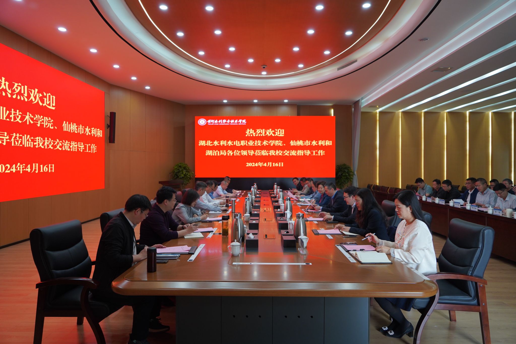 4月16日上午,湖北水利水电职业技术学院党委副书记、校长姚祖军,仙桃市水利和湖泊局党组书记、局长李功胜等一行来我校进行考察交流。我校党委书记周保平,副校长朱焕立、周志琦出席交流活动。校党政办公室、教师工作部、教务处、计划财务处、科技处等部门、单位负责人参加交流。