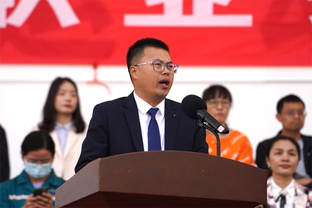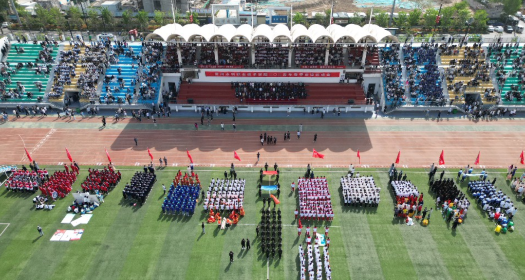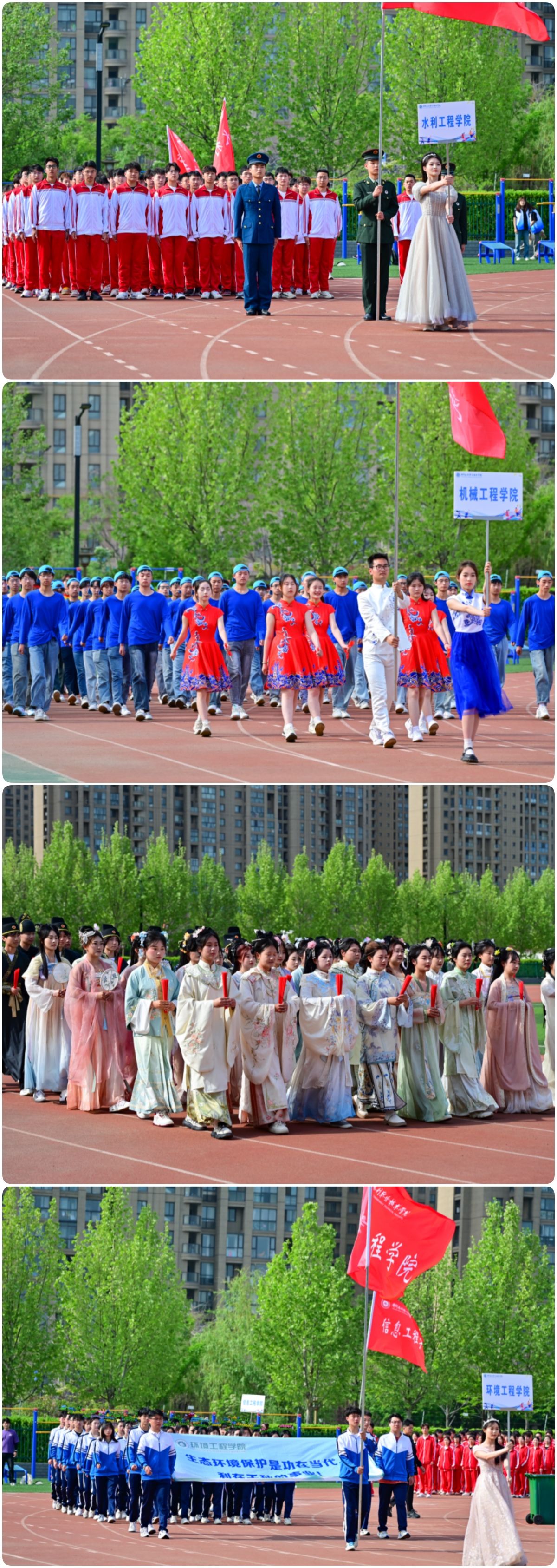 党委副书记、校长胡昊为运动会致开幕词。他指出,学校体育工作是推动我校事业发展的重要一环,以体育人的新生态引领学校事业发展迸发出百花竞艳的时代张力。在过去的一年里,同学们锐意进取、敢于拼搏,在各类国际、国内大赛频获佳绩。以中国排名第一,总排名第二的优异成绩在金砖国家欧亚高科技公开赛中荣获2枚银牌。师生在各类国家级职业技能竞赛共获一等奖38项、二等奖55项、三等奖44项。老师们严谨治学、德技兼修,教育教学取得丰硕成果。5个项目获职业教育国家级教学成果二等奖,入选第三批全国高校黄大年式教师团队1支,34部主编教材入选首批“十四五职业教育国家规划教材”,新增享受河南省政府特殊津贴、河南省优秀教育教学管理人才、河南省教育厅学术技术带头人各1人、河南省职业教育教学专家3人、河南省职业院校省级名师6人、省级骨干教师16人。在全校师生的共同努力下,学校牵头成立全国测绘地理信息行业产教融合共同体,获评黄炎培优秀学校奖、全省党建工作示范高校、河南省第六届“大美学工”十佳优秀学生工作先进单位,获批河南省高校示范性马克思主义学院,入选教育部第一批职业院校数字校园建设试点单位。学校顺利通过河南省申报设置本科学校的考察,在高水平高质量办学的道路上实现了跨越式发展。在接下来的三天时间里,他希望参赛的运动员们以饱满的激情、昂扬的斗志、良好的精神风貌投入到比赛当中,赛出风格,赛出水平。也希望在比赛中严守纪律,遵守规则和赛程规定,注意比赛安全,做到友谊第一,比赛第二。希望全体裁判员老师严格按规程裁判,忠于职守、秉公执法、公正裁决。希望体委会以细致的工作为运动会做好服务,维护赛场纪律,保证赛场安全,让赛场成为加深交流、增进情感、凝聚人心的平台。