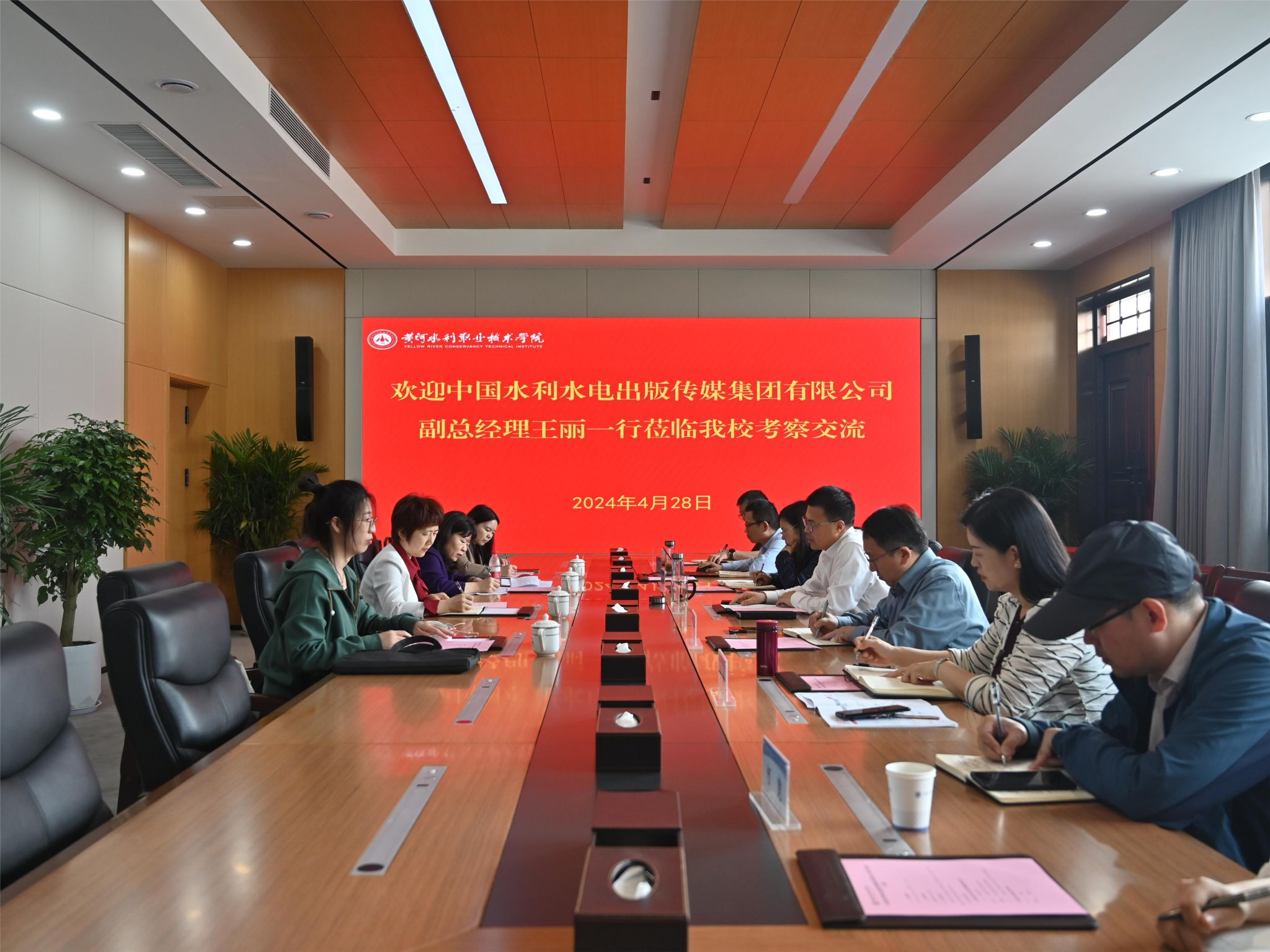 胡昊对来宾一行的到访表示热烈欢迎,详细介绍了学校师资队伍、人才培养、科学研究、社会服务、“双高计划”建设和职业本科申报等方面的情况。他指出,黄河水院和中国水利水电出版传媒集团有限公司因水而生、因水结缘,双方一直以来保持着良好的合作关系,希望双方今后在教育教学、人才培养、教材出版、社会服务和人工智能在五金新基建应用等方面加强合作,互利共赢。