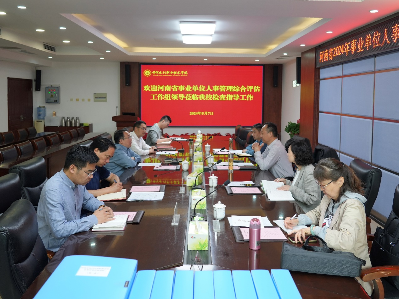 5月7日上午,由省应急管理厅人事处监察专员、一级调研员魏亚军为组长的河南省2024年事业单位人事管理综合评估工作组莅临我校检查指导工作