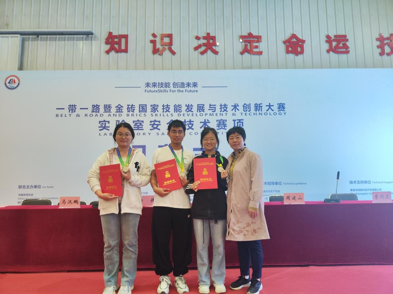 一带一路暨金砖国家技能发展与技术创新大赛是2017年金砖国家最高领导人会晤筹备委员会认可、经中华人民共和国外交部备案、金砖国家工商理事会批准的国际大赛。本次大赛以“未来技能 创造未来”为愿景,是推动金砖国家间教育合作、技能开发和人文交流活动的重要平台。竞赛内容包含实验室安全基础知识、实验室隐患排查、实验室安全操作和实验室事故应急处置,重点考察参赛选手在实验室安全管理、应急救援领域等技能岗位需具备的核心技能。在竞赛环节,我校3位选手沉着应对,争分夺秒,展示了扎实的专业实力、较高的综合素养。