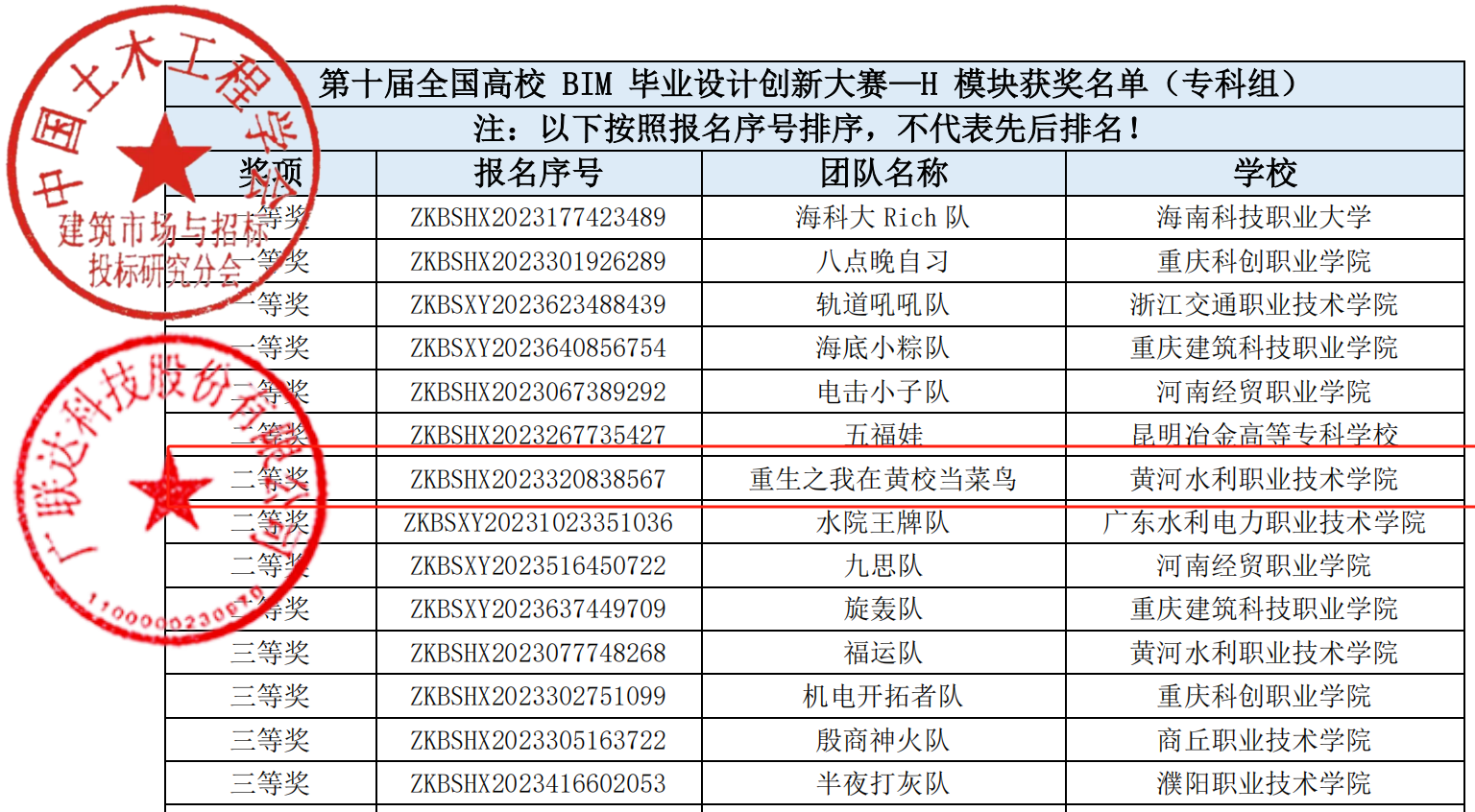 近日,在第十届全国高校BIM毕业设计创新大赛中,我校土木与交通工程学院工程造价专业教师王斌、姚鹏、牛贺洋等指导学生蔡家浩、王玥、蒋博玺、余盼盼等参加A、D、E、H四个模块,获两个一等奖,两个二等奖的好成绩!
