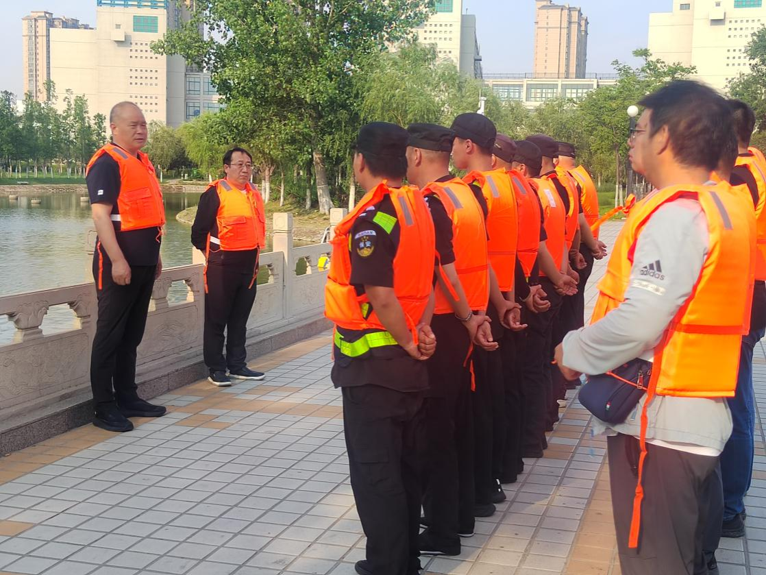 防汛应急演练分为水上救援、医疗急救和积水抽排三个部分,共调配了皮划艇、AED自动体外除颤仪、发电机、潜水泵、救生衣等救援应急物资。应急避险逃生演练分为消防知识培训、灭火器操作方法及避险逃生应急疏散演练三个环节。