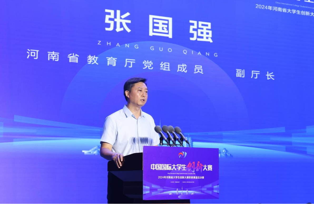 张国强指出,近年来,省委、省政府和省教育厅把发展现代职业教育作为推动区域经济发展的重要引擎和有力支撑,采取一系列措施强力推进职业教育建高地。全省职业院校持续推进职业教育改革,不断深化人才培养模式,作为更名后的第一届比赛,今年职教赛道报名项目达到了17.3万个,较去年增长了2.9万个,增幅达20%,报名人数再创历史新高,职教赛道已经成为我省覆盖面最大、影响最广、成果最多、规格最高的大学生创新创业盛会,已经成为我省职业教育赋能科技创新、促进就业创业、服务现代化河南建设的重要平台。我省坚持把创新摆在发展的逻辑起点、现代化建设的核心位置,把创新驱动、科教兴省、人才强省战略放在“十大战略”之首。各学校一定要牢牢把握难得历史机遇,紧紧围绕经济社会发展需要,发挥职业教育天然优势,以双创为平台,以大赛为牵引,以产教融合为支撑,培养广大学生“敢闯会创”精神,锻造出一大批具备创新思维、实践能力和企业家精神的高素质技术技能人才,为中国式现代化建设河南实践贡献智慧力量。他对参赛学校和师生提出三点要求:一要坚持以赛促教,探索人才自主培养的新途径。要主动对接国家和我省经济社会发展需求,切实提高学生的创新精神、创新意识和创新能力,全面提高我省职业院校人才自主培养的质量。二要坚持以赛促学,着力培养中原创新创业的生力军。培养有理想、敢担当、能吃苦、肯奋斗的新时代中原好青年,造就一批“想创业、敢创业、会创业”的优秀人才。三要坚持以赛促创,努力搭建一批产教融合新平台。要加大学校与政府、科研院所、行业企业的协同育人力度,优化资源整合形成合力,促进教育链、人才链与产业链、创新链有机衔接,以创新引领创业、以创业带动就业,推动形成职业院校毕业生更高质量创业就业的新局面。