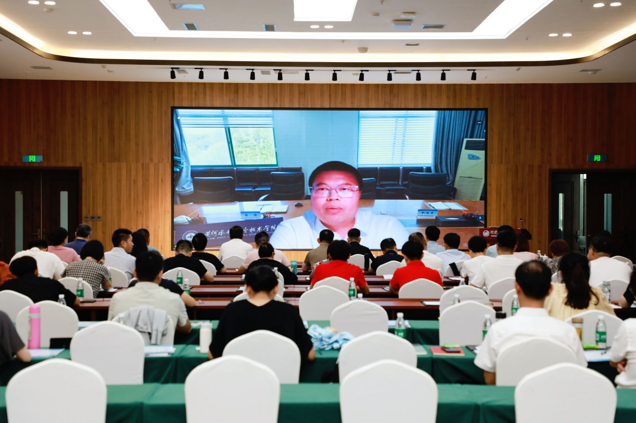 王复明院士代表坝道工程医院致辞。他介绍了坝道工程医院的建设背景、建设和应用现状以及所取得的重要成果。他表示,党和国家高度重视职业教育,针对国家对“双师型”教师的新要求、新举措,高职院校要切实推进职普融通、产教融合、科教融汇,聚焦教师队伍教学和科研能力的提升。坝道工程医院作为综合试验场具有“大规模、大尺度、真场景、真实操”特点,可以为学生实训、教师科研、社会科普、成果转化提供平台。针对此次培训,坝道工程医院愿意联合黄河水利职业技术学院为参培教师提供深入学习、探索和实践的条件。