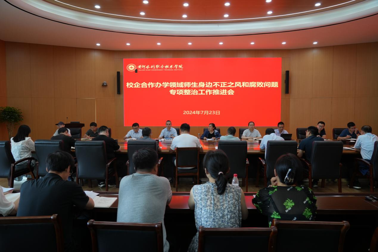 会上,陶永霞介绍了学校校企合作办学问题专班工作情况,对近期重点工作做了布置安排。教务处副处长李孝坤宣读了我校校企合作办学领域群众身边不正之风和腐败问题专项整治实施方案。