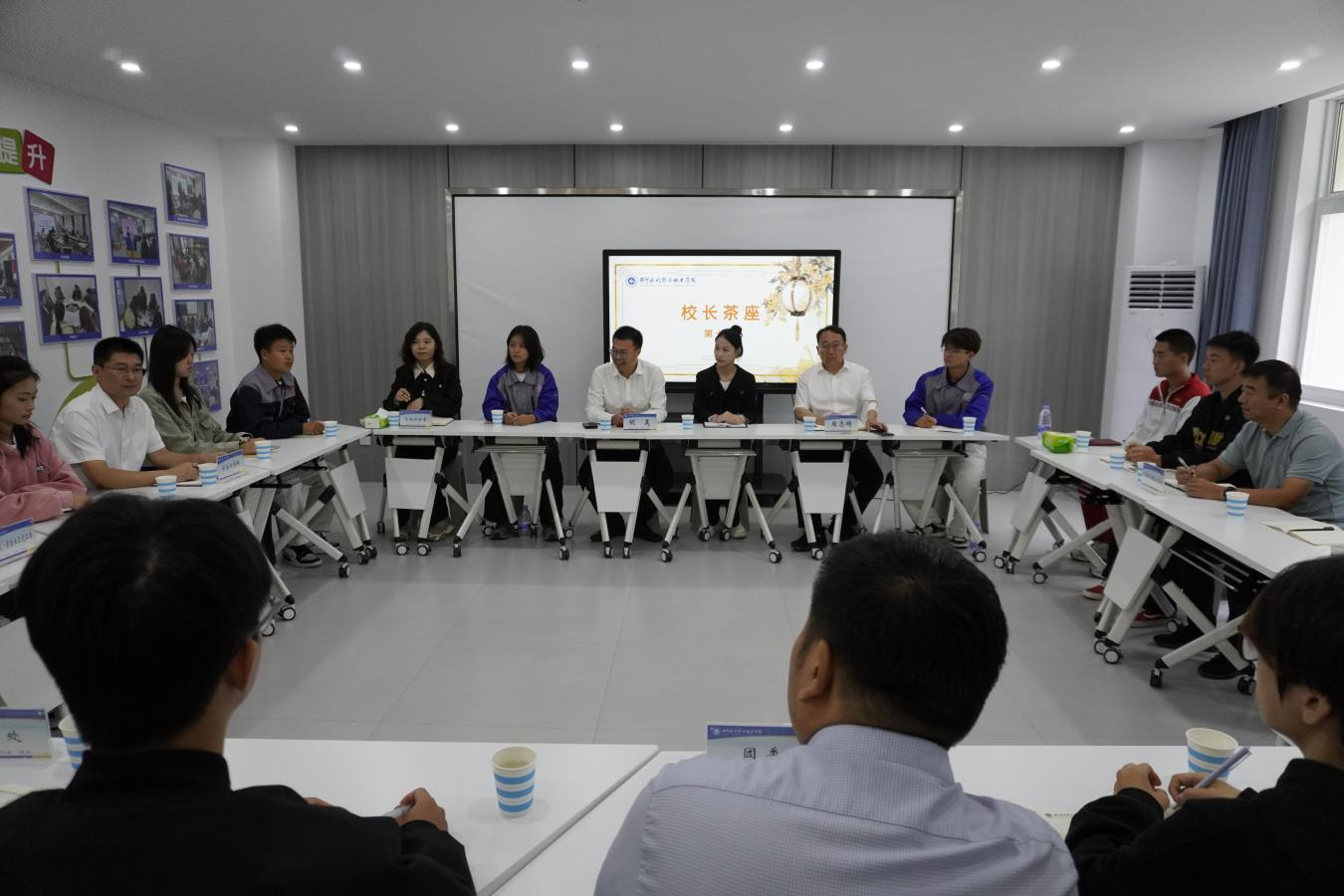 9月13日,我校在学生社区名辅导员工作室开展第七期“校长茶座”。校党委副书记、校长胡昊带领副校长周志琦,党政办公室、学生工作部、“一站式”学生社区党工委、教务处、团委、后勤管理服务中心、资产经营管理中心等部门负责人与各学院16名学生代表围桌而坐,服务学生需求,响应学生诉求,共话学生成长和学校发展。