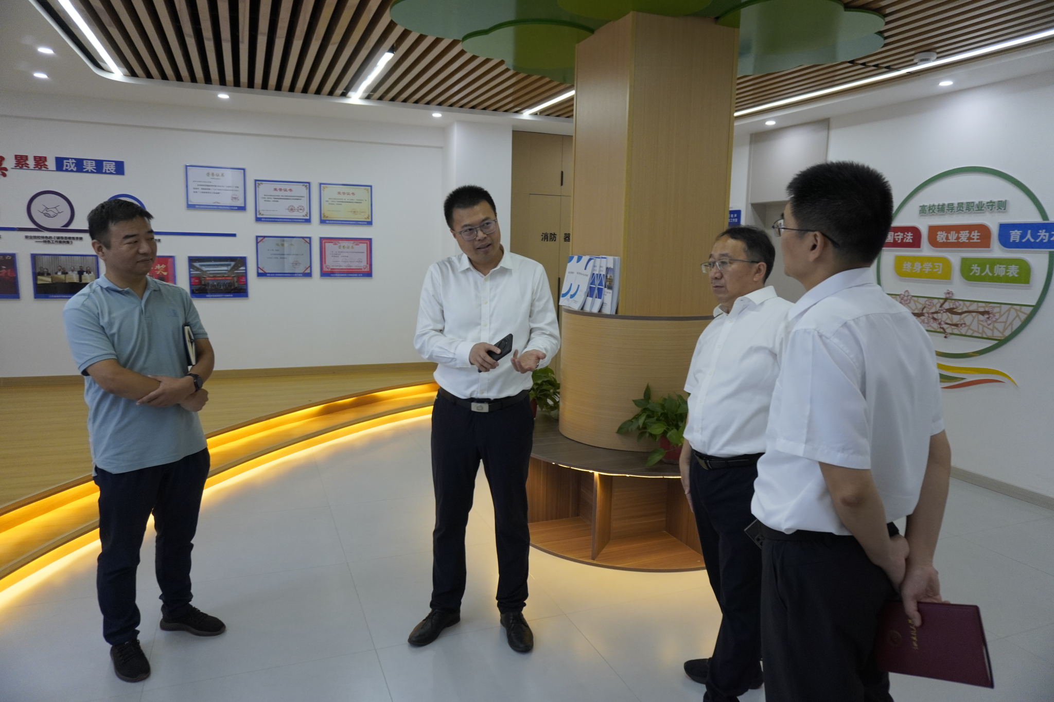 胡昊一行首先调研指导学生社区事务服务中心、心理辅导中心、名辅导员工作室等“一站式”学生社区功能区,与相关同志亲切交谈,了解线上线下的诉求即办、心理健康教育及辅导员成长发展情况,并就如何优化学生社区育人功能提出了要求。