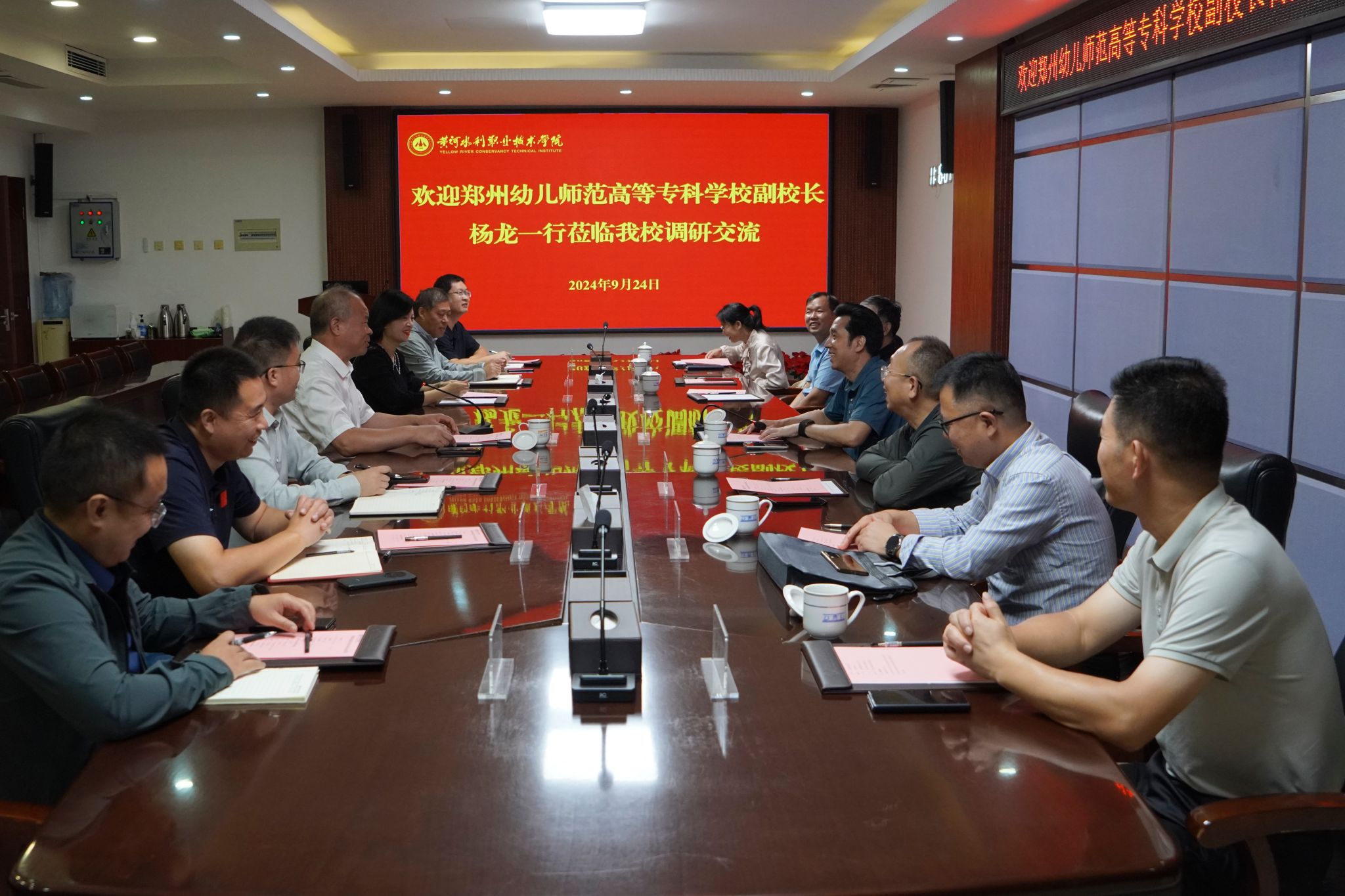 9月24日,郑州幼儿师范高等专科学校副校长杨龙一行7人到我校进行考察交流。我校党委副书记、工会主席杨士恒出席交流活动。科技处发展规划处图书馆后勤管理服务中心、双高建设办公室、信息化管理办公室等部门、单位负责同志参加交流。