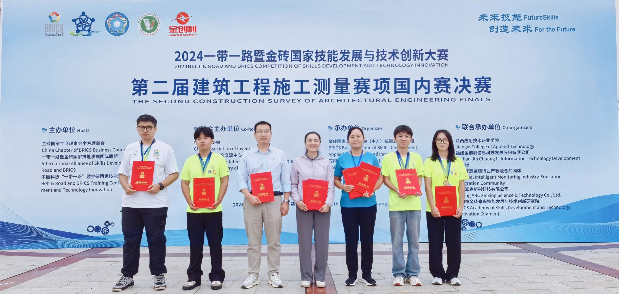 919-23日,2024一带一路暨金砖国家技能发展与技术创新大赛第二届建筑工程施工测量赛项国内赛决赛在江西赣州举行,来自25个省市65所高职院校的120支参赛队伍同台竞技。我校两支参赛队奋勇拼搏,取得一等奖、二等奖各1项;学校获“最佳组织奖”。