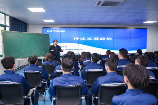 第二期订单班开班仪式结束后,孙向群为订单班学生开展第一次企业专家授课。孙向群总经理同学们分享了智慧水务下运营管理的行业发展趋势,讲述了新质生产力下未来水务行业“新范式”,即从“夜间值班”到“黑灯工厂”,智慧水务已实现由自控+智能控制转变为全流程智能化控制、打造智慧管理新型水厂的运营模式课堂氛围轻松活跃。