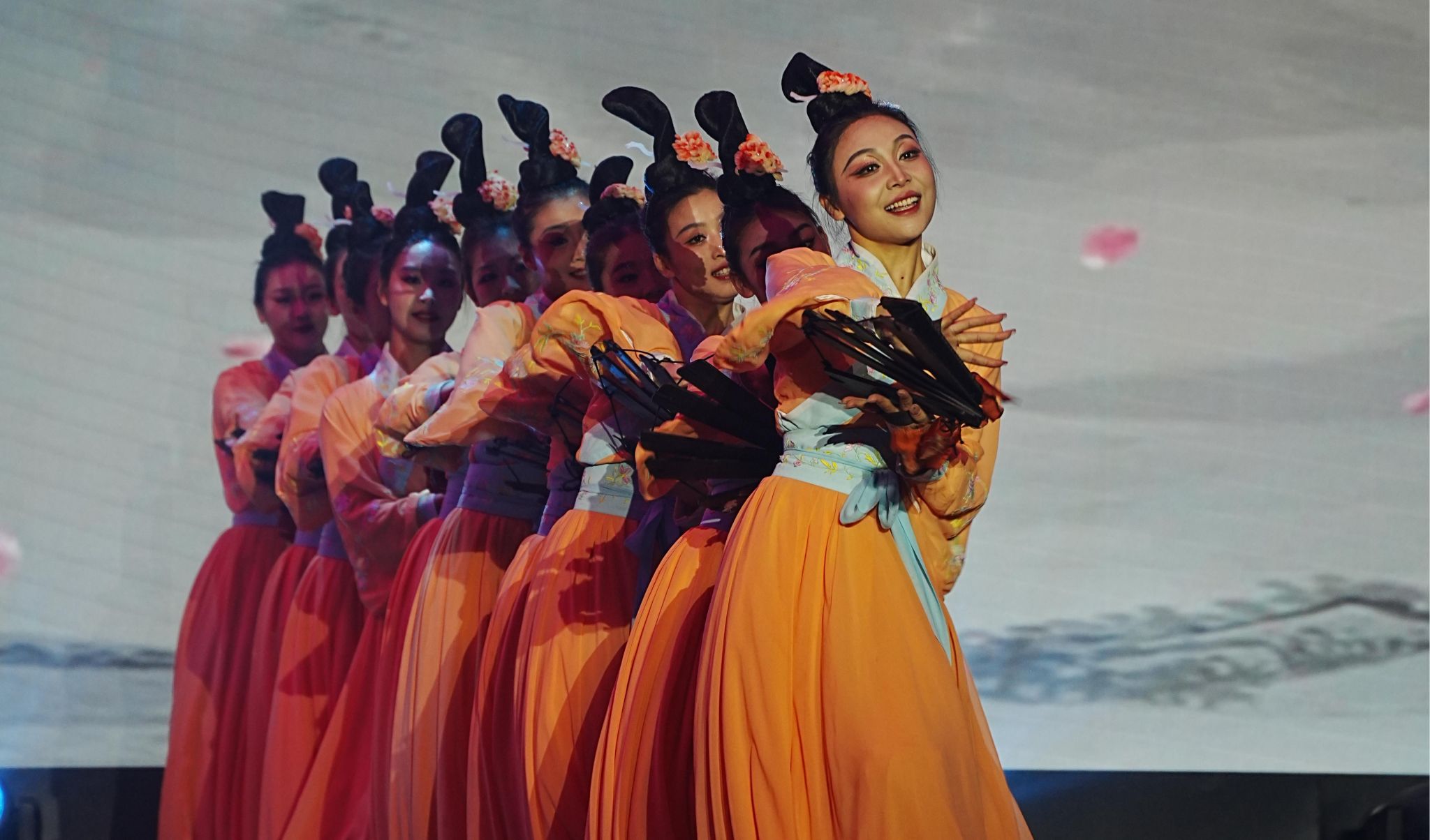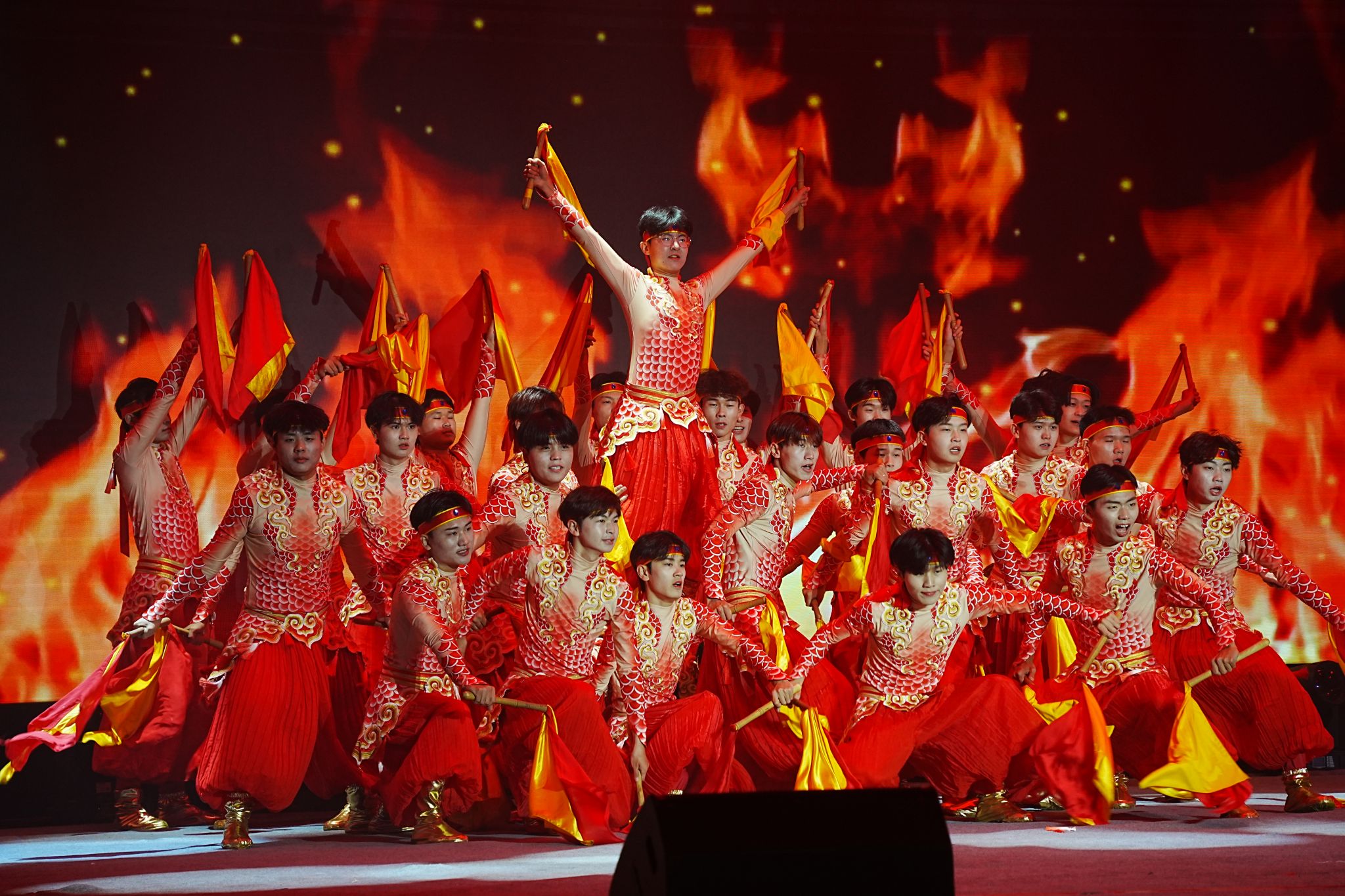 在第一篇章“筑梦水院”中,歌伴舞《临江仙·黄河水院吟》描绘了水院学子以黄河保护与治理为己任,为黄河70余载岁岁安澜和人民治黄事业做贡献的情境;开封非遗拍板舞《汴水檀声》古色古香、宋风浓郁,仿佛一幅古画鲜活了起来;一颗初心,镌刻赓续传承的百年荣光,一种信仰,汇聚日月新天的磅礴力量,高歌一曲《万疆》,勾勒山河无恙的盛世景象。