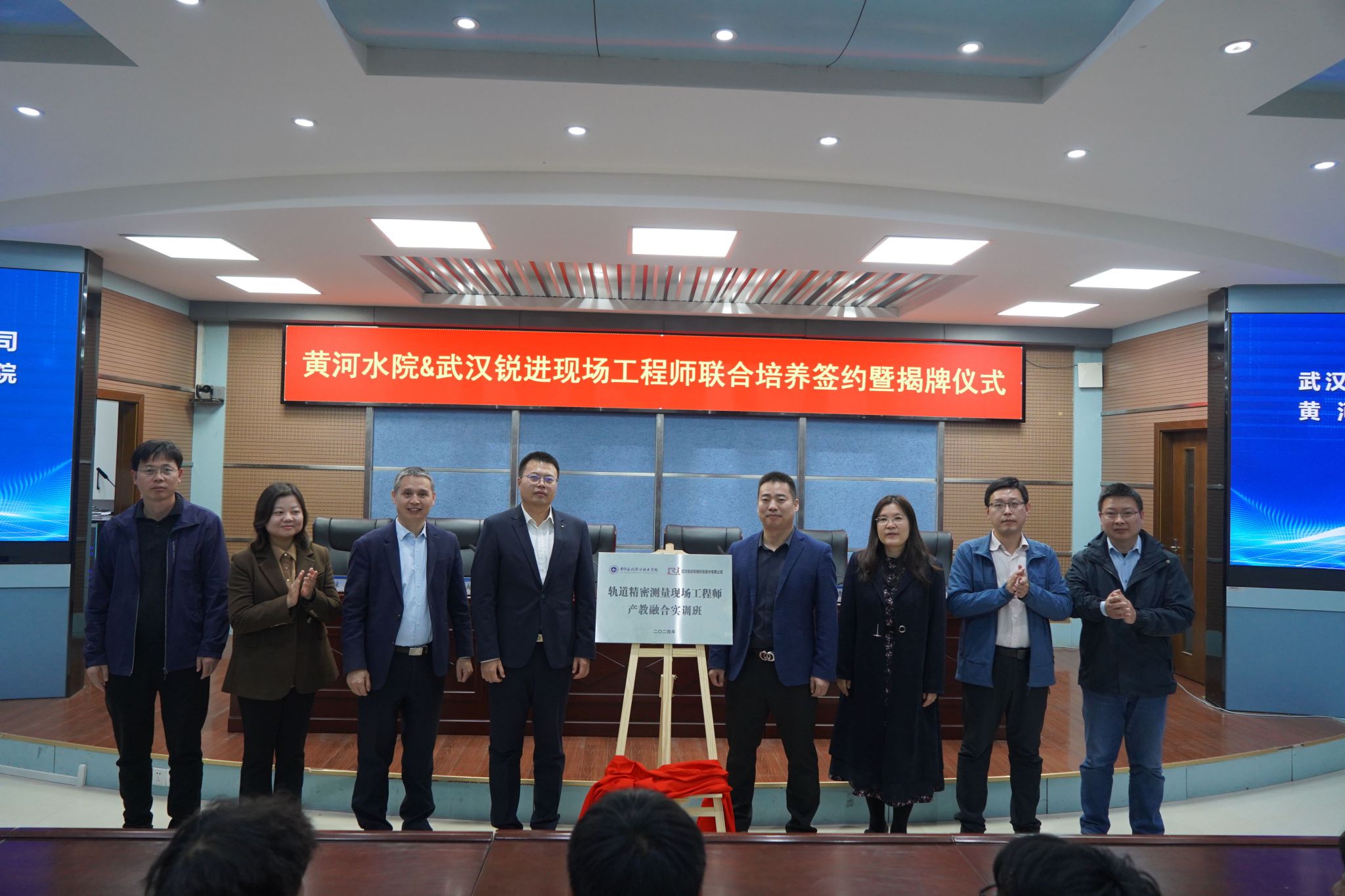 测绘工程学院院长何宽和张鑫共同签署《现场工程师联合培养协议书》。胡昊和张鑫为“轨道精密测量现场工程师产教融合实训班”揭牌。