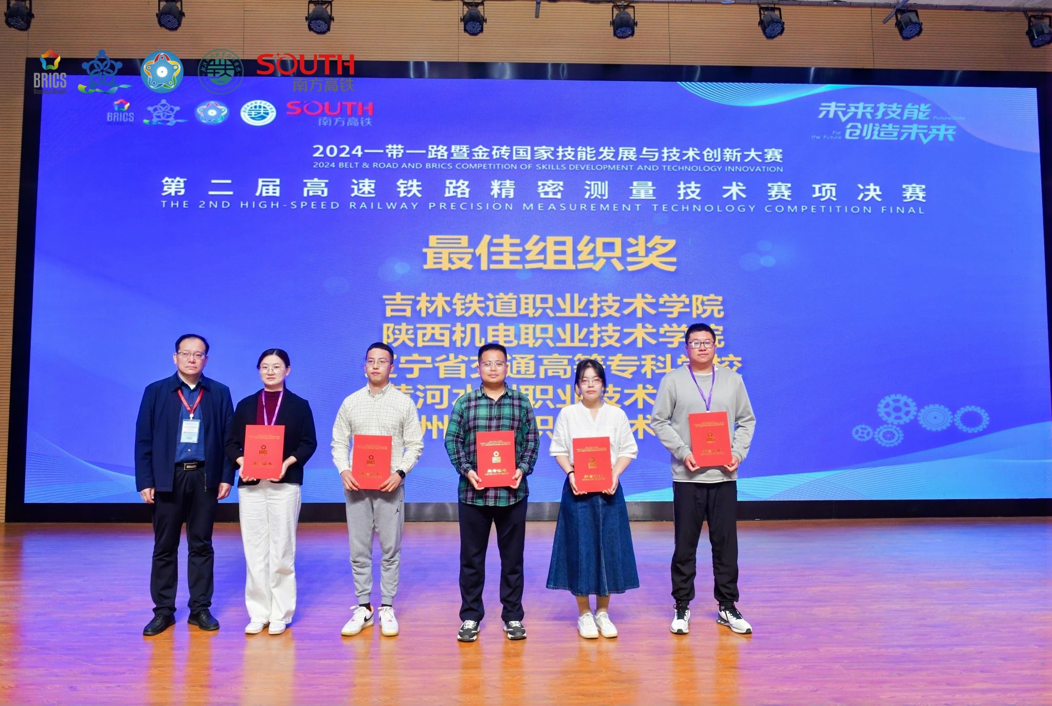 本次大赛由金砖国家工商理事会中方理事会、一带一路暨金砖国家技能发展国际联盟、中国科协“一带一路”暨金砖国家技能发展与技术创新培训中心、中国发明协会、教育部中外人文交流中心等联合主办,武汉铁路职业技术学院、广州南方高速铁路测量技术有限公司联合承办。大赛共设自动化监测、施工放样和轨道精测精调等三个类别合计五项具体比赛项目。我校选手在比赛中克服多重困难,认真严谨、扎实细致地完成每一个赛项、每一步具体操作,最终取得一等奖。