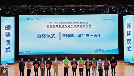 本次大赛竞赛内容设计以某工厂生产多配置无线鼠标为场景,开展生产计划、物料计划、仓库管理(AS/RS)、配送管理、WMS、MES 软件应用、AGV 应用等内容,完成多批次生产组织服务保障。大赛共分三个环节,即物流职业素养测试(理论)、物流中心运维与生产物流实施(实操)及方案汇报答辩。我校参赛选手认真备赛,在比赛中展示了智能仓储设备的应用与管理等方面的技能,赢得了评委的一致认可。