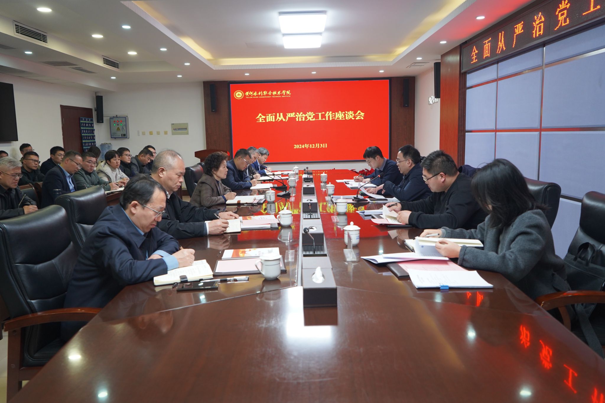 12月3日,省委教育工委全面从严治党重点工作落实情况专项检查组组长、省委教育工委组织干部处副处长王岩琨等一行4人来校,就学校全面从严治党重点工作落实情况开展专项检查。全体校领导班子成员、相关部门负责同志及各二级学院党总支书记参会。校党委书记周保平作专项工作汇报。校党委副书记、校长胡昊主持会议。