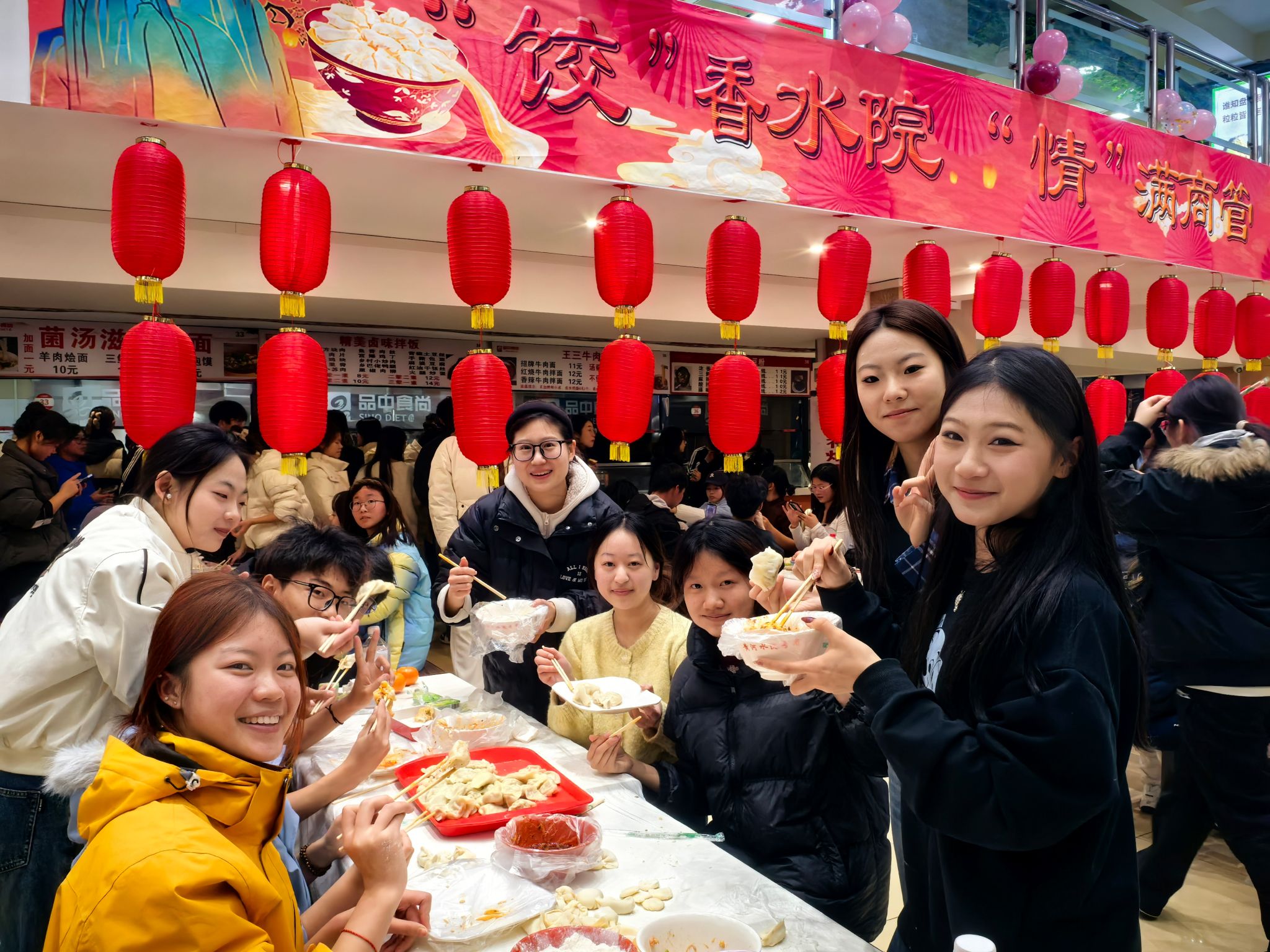 活动现场气氛热烈而温馨,校领导与师生围在桌前包饺子,关心了解同学们的学习生活情况及如何迎接即将到来的寒假和假期安排。在欢声笑语中,大家一边交流着包饺子的心得,一边分享着各自家乡的冬至习俗。游戏环节和抽奖活动将节日氛围推向了高潮,同学们丰富多彩的才艺表演诠释着青春的热情与朝气,赢得阵阵掌声与喝彩。