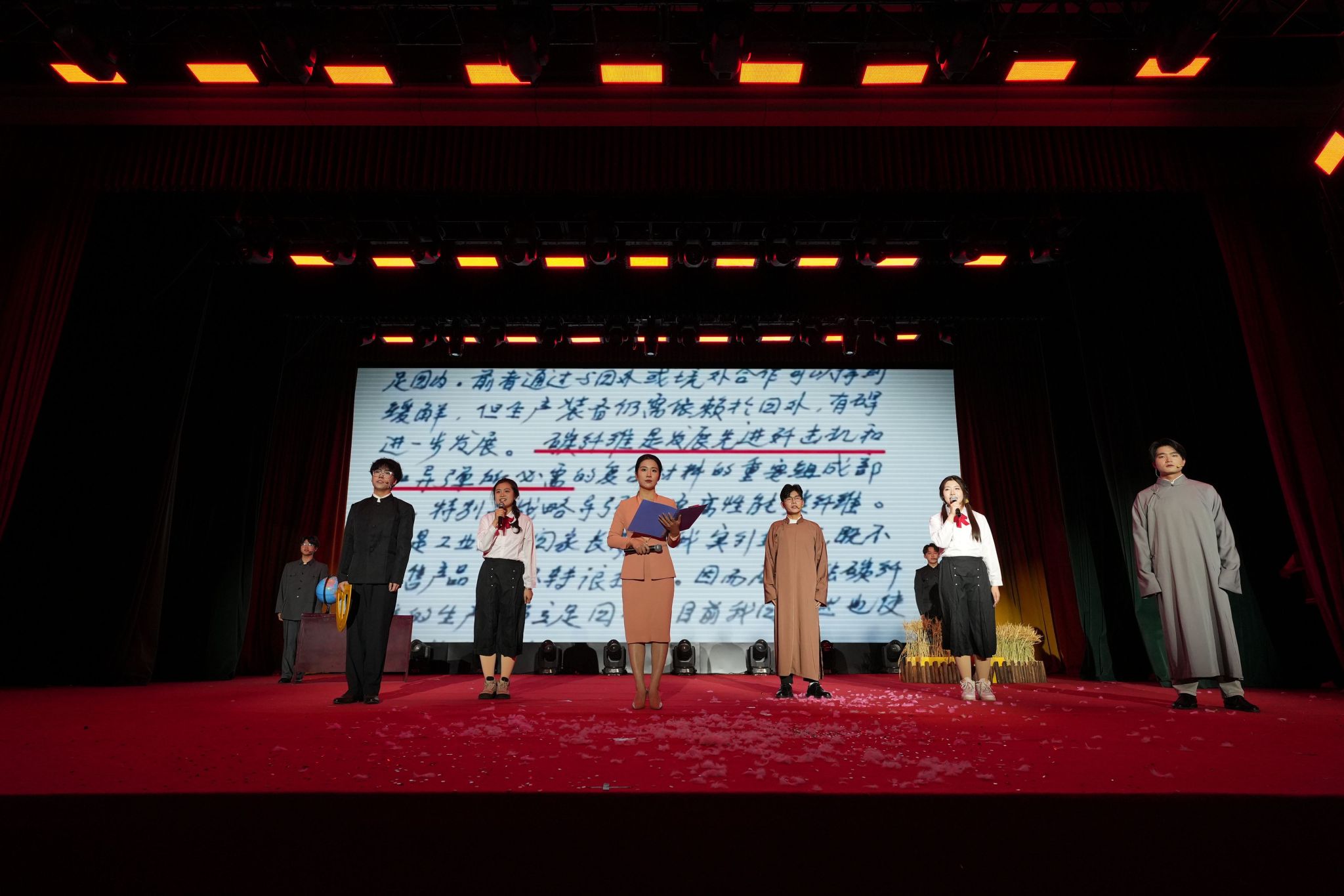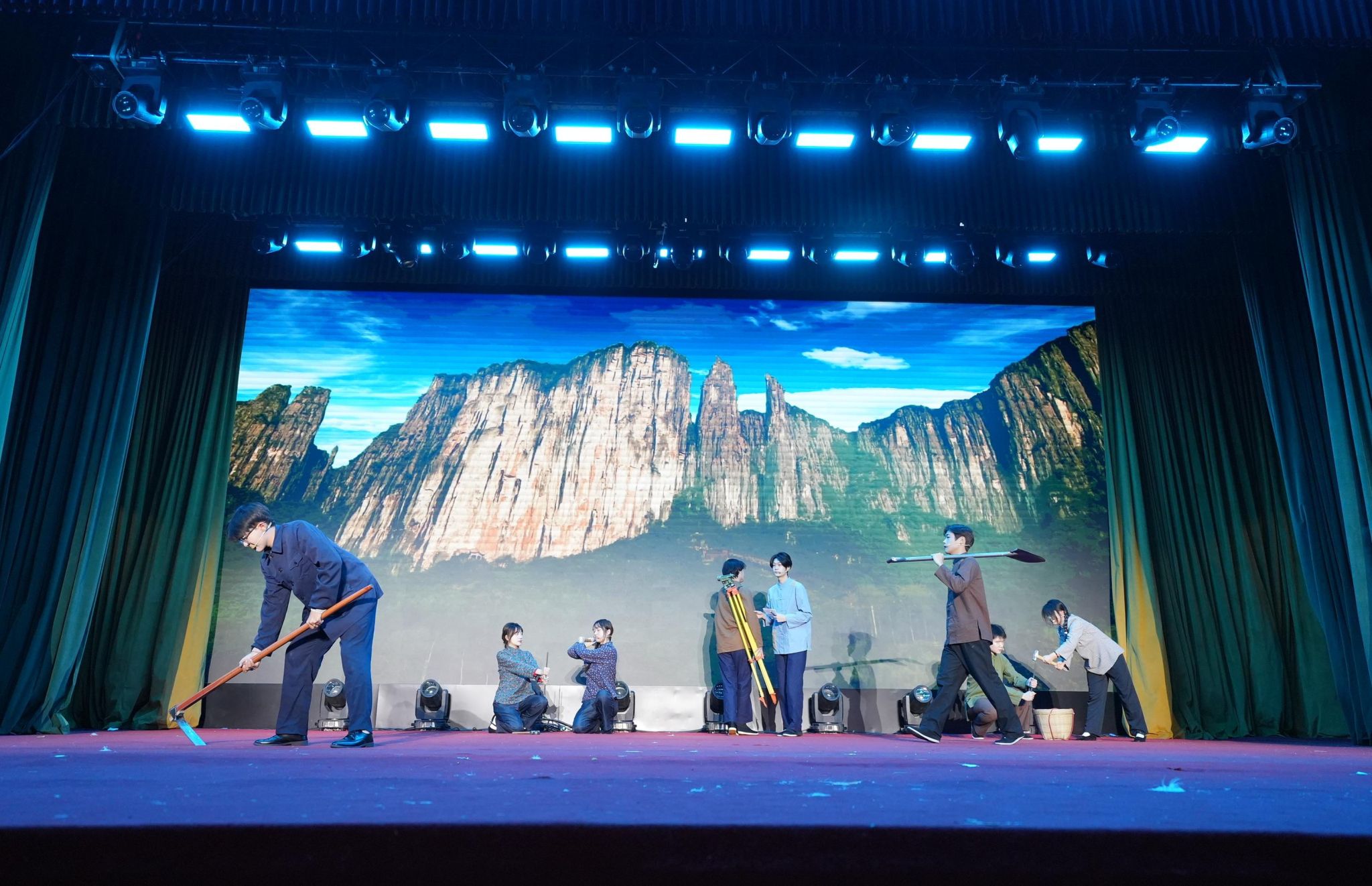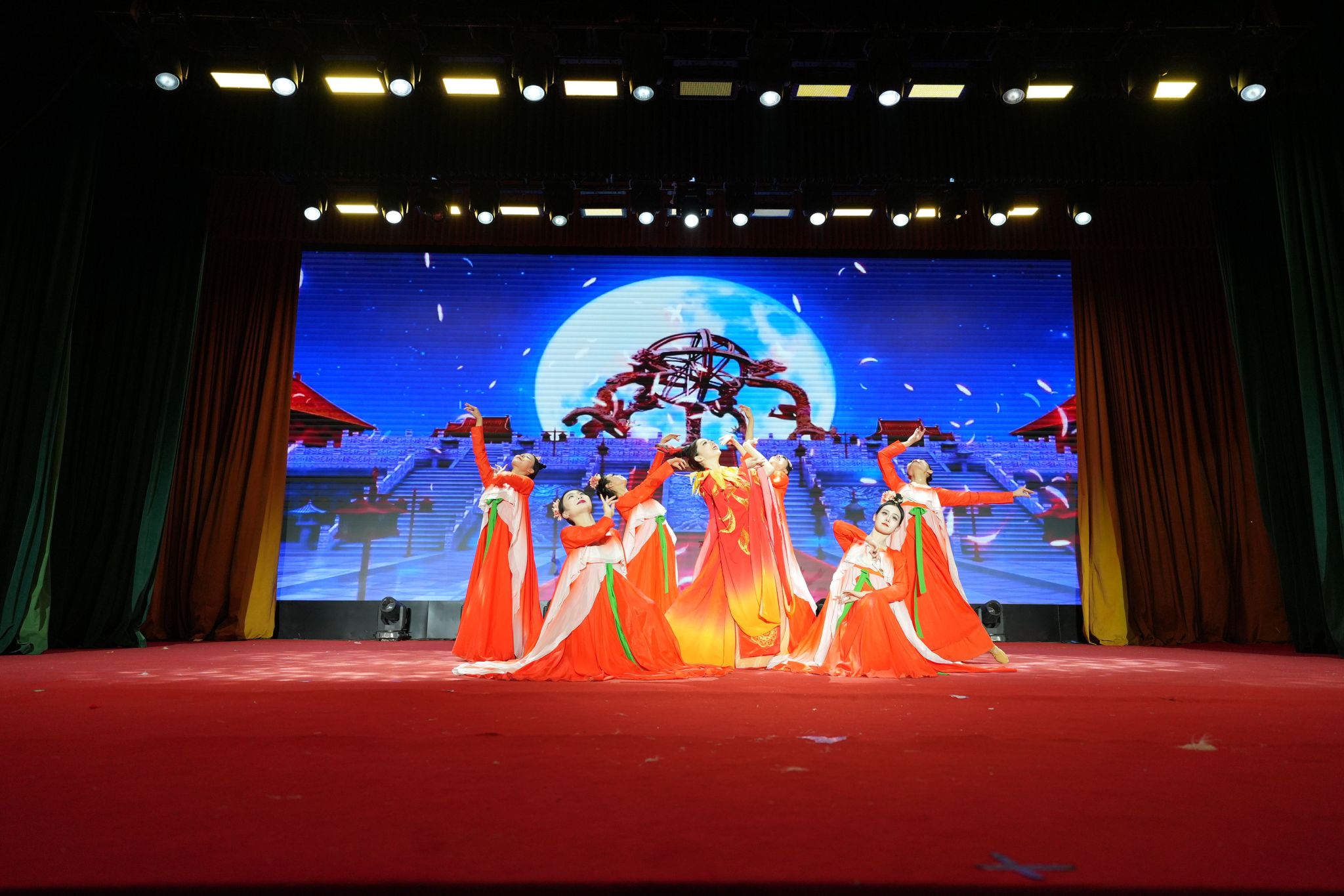 身着华服,手持彩绸,伴随着欢快的节奏起伏跳跃……演出在青春洋溢的舞蹈《巳巳如意》中拉开序幕。晚会分为“赓续”“韶华”“担当”三个篇章,涵盖了舞蹈、歌曲、情景剧、盘鼓、相声等各具特色、形式多样的表演形式。