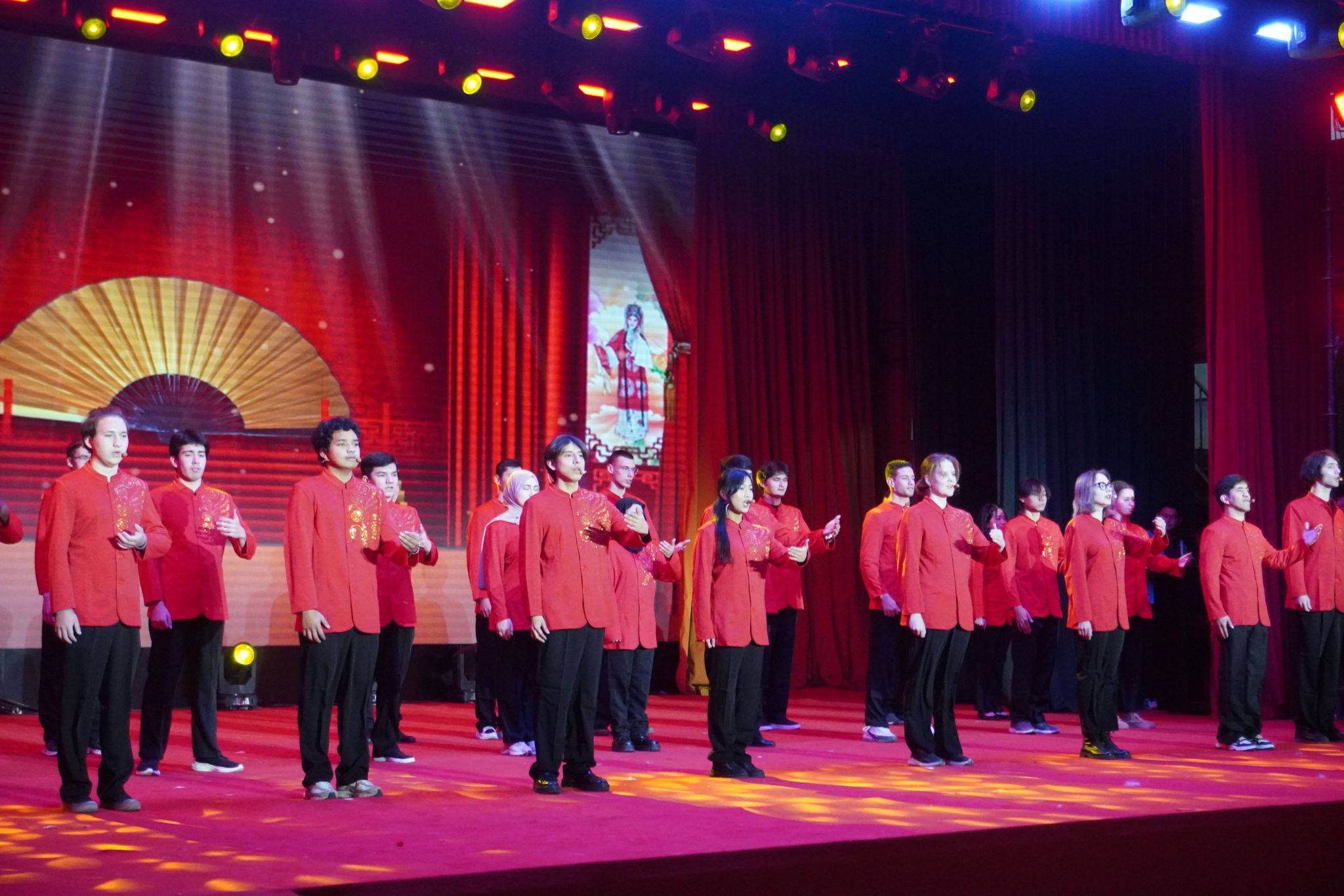 第二篇章,韶华。深刻的文化内涵、创新的展现形式,讲述黄河文化“思政课”。盘鼓《黄河鼓阵》,用激昂的鼓点诉说历史的厚重与文化的传承;相声《好好学习》,用幽默诙谐的方式来和大家聊关于 “好好学习” 的那些事儿;豫剧《朝阳沟》《大登殿》,唱出了来自二十四个国家的留学生们对中国传统文化的热爱;小合唱《上春山》,引领我们踏上一场别具一格的 “春山绮梦之旅”。