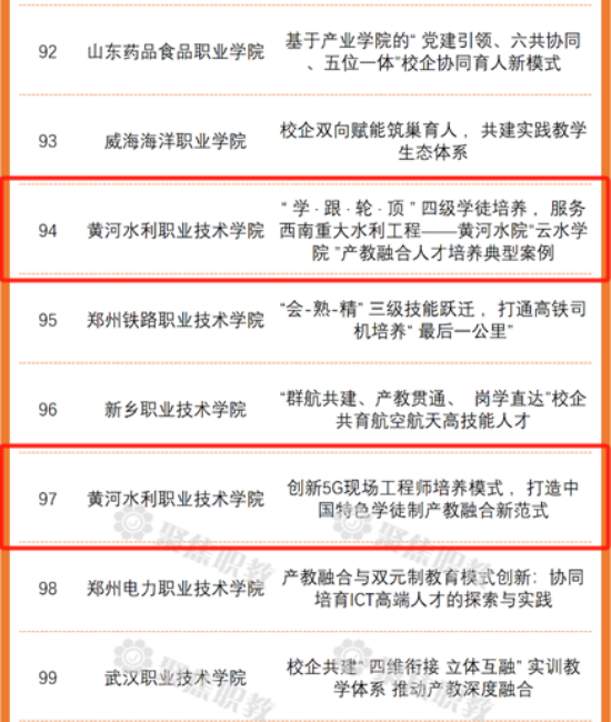 近日,中国教育发展战略学会产教融合专业委员会发布了《关于公布2023-2024产教融合校企合作典型案例名单的通知》,我校推荐的两个案例《“学 跟 轮 顶”四级学徒培养,服务西南重大水利工程--黄河水院“云水学院”产教融合人才培养典型案例》和《创新5G现场工程师培养模式,打造中国特色学徒制产教融合新范式》成功入选。