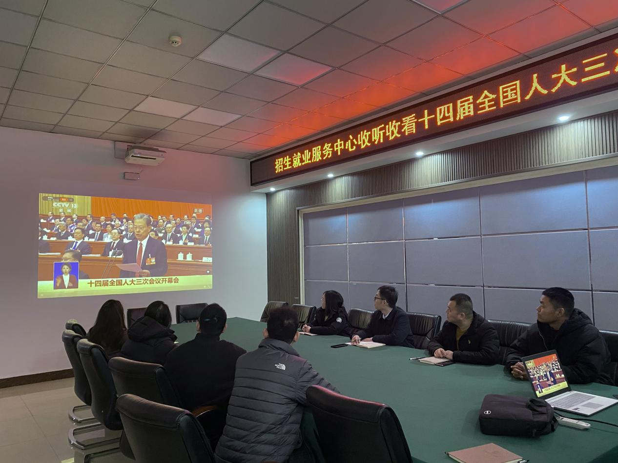 3月5日上午,十四届全国人大三次会议在北京开幕,我校各部门、各单位积极组织师生通过网络、电视、广播等多种方式,收听收看大会开幕式直播实况,认真学习贯彻全国两会精神。(供图:各相关部门)
