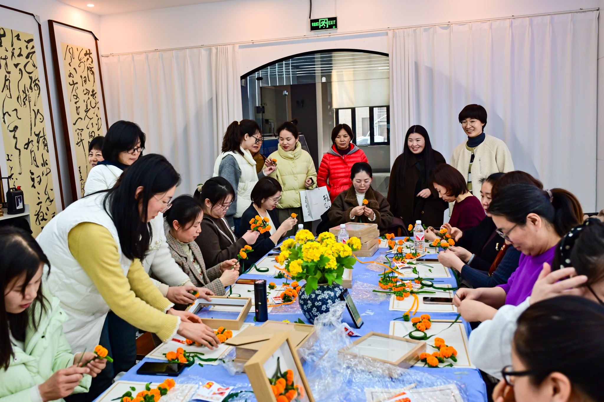 活动的手工制作环节精彩纷呈。女教职工们分组参与绒花、螺钿等非遗手作体验,在专业老师指导下认真学习、亲手实践,用灵巧双手创作出一件件精美作品。现场气氛热烈温馨,欢声笑语不断,大家在交流协作中增进感情,收获了独特的节日礼物和美好时光。