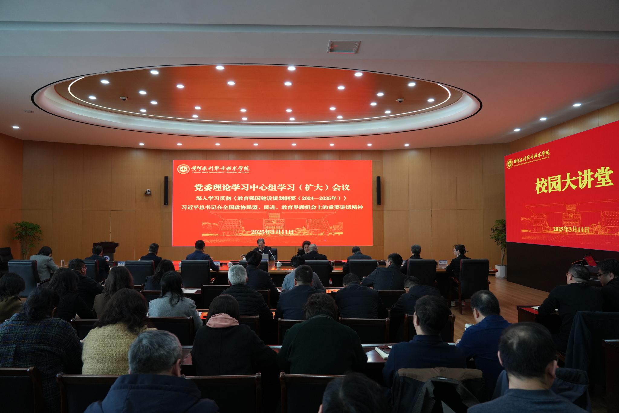 为深入学习贯彻习近平总书记在全国政协十四届三次会议民盟、民进、教育界联组会重要讲话精神和中共中央、国务院印发的《教育强国建设规划纲要(2024—2035年)》(以下简称《纲要》),3月11日下午,我校在行政楼第五会议室召开党委理论学习中心组学习(扩大)会进行专题学习。特邀中国高等教育学会职业教育分会理事长、浙江金融职业学院原院长、党委书记、浙江省高职院校党建研究会会长周建松教授主讲。全体校领导、中层干部正职参加学习。校党委书记周保平主持会议。