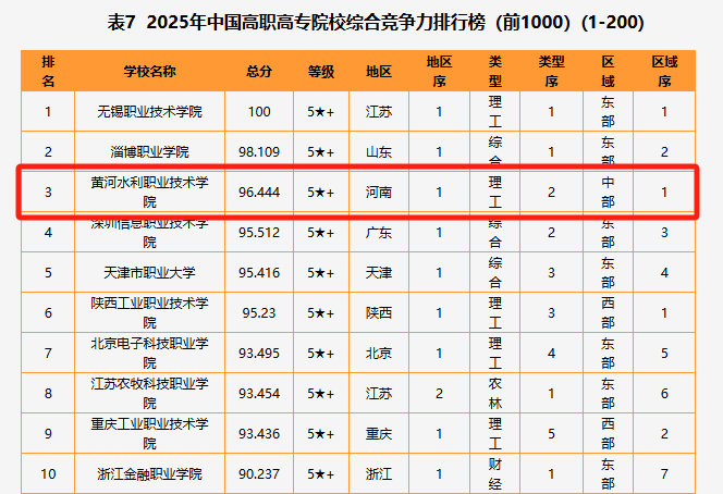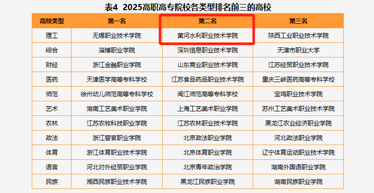 3月17日,“金平果”2025版中国高职院校综合竞争力排行榜正式发布。我校凭借卓越的办学实力与创新成果,在1560所参评高职高专院校中脱颖而出,位列全国第三,理工类全国第二、中部地区第一、河南省第一。