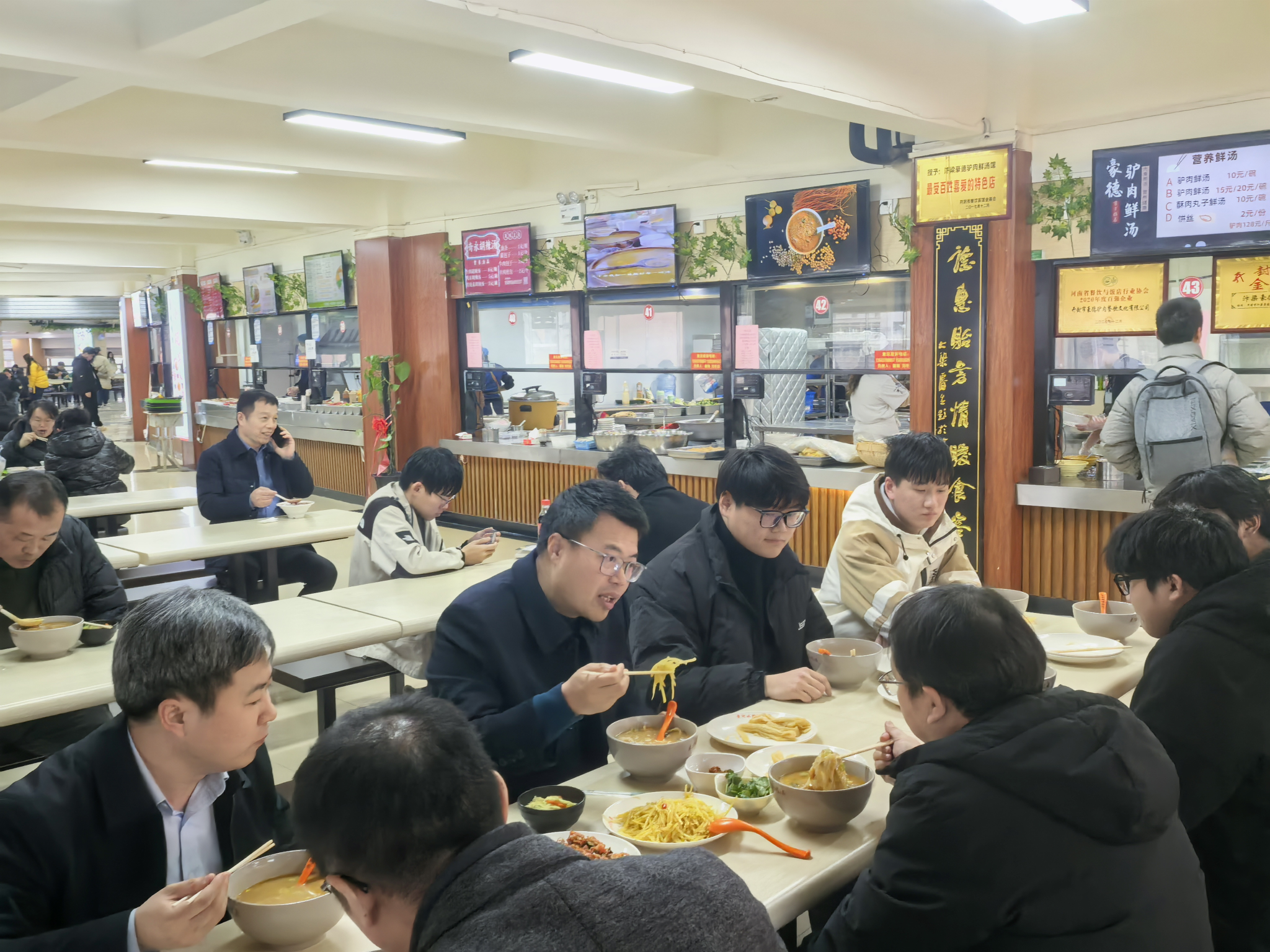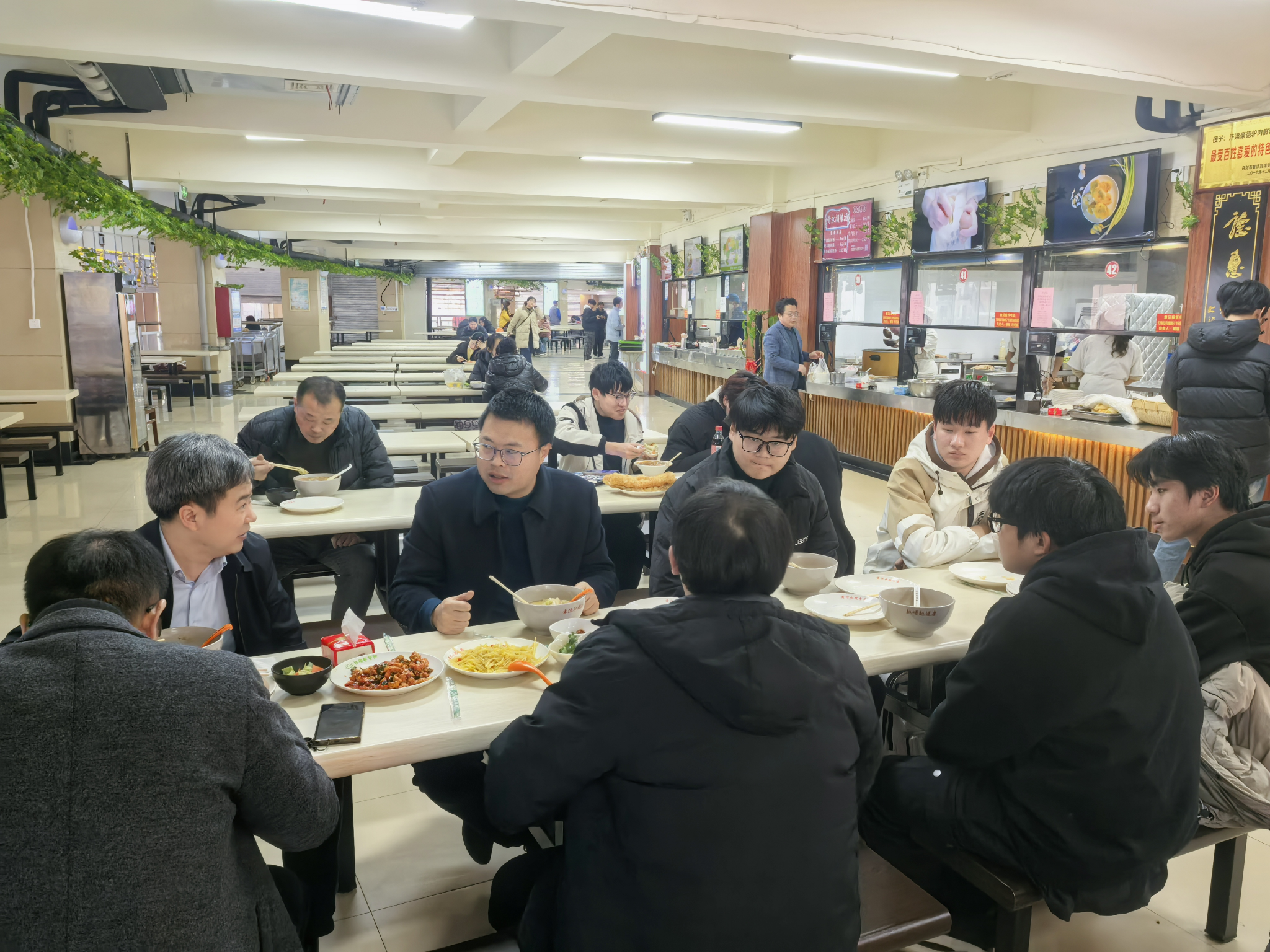 在学生餐厅,校领导与同学们亲切交流。胡昊详细询问了学生的家庭状况、在校学习进展以及日常生活需求,并重点了解学生对食堂饭菜价格、质量、种类等方面的意见和建议。交流中,胡昊勉励同学们要树立远大目标,锚定发展方向,脚踏实地、勤学奋进,以扎实的行动为未来奠定坚实基础。