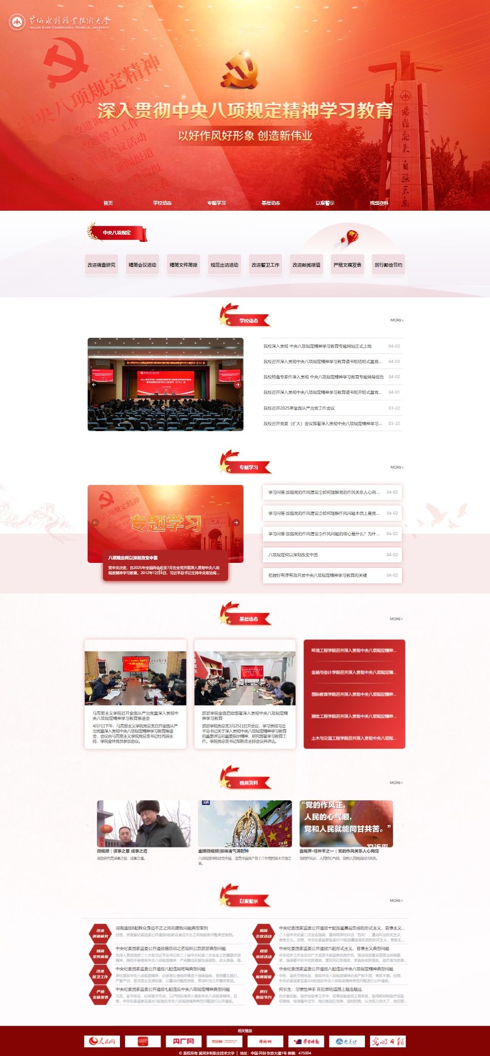 专题网站旨在宣传学校在深入贯彻中央八项规定精神学习教育中的典型经验和先进做法,及时反映学习教育的最新进展与成效,推动学校深入贯彻中央八项规定精神学习教育走深走实。