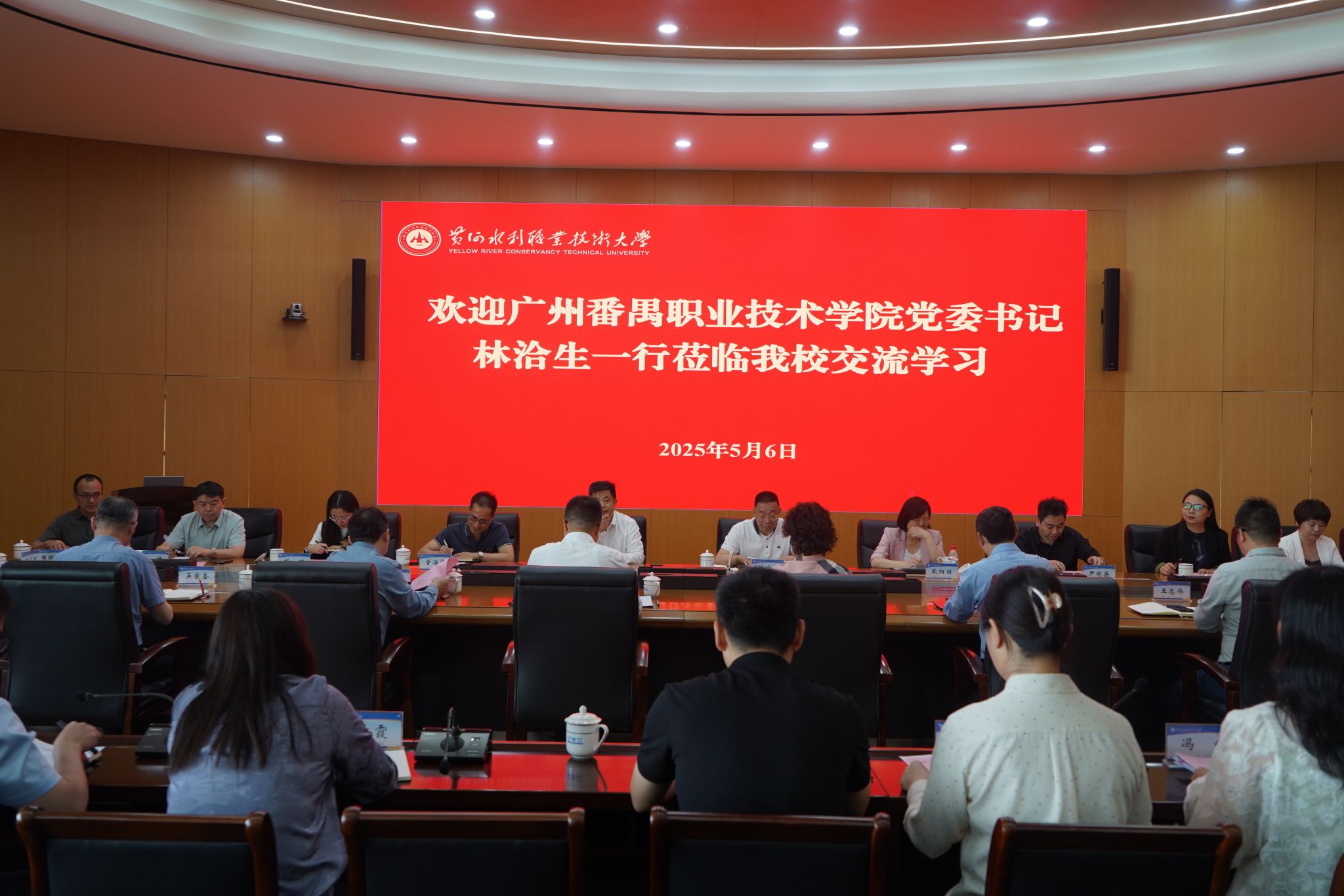 林洽生对我校的热情接待表示感谢。他简要介绍了广州番禺职业技术学院的办学情况,并指出,黄河水利职业技术大学作为全国职业教育改革的“排头兵”,在职业本科建设等方面取得的丰硕成果,令人深受启发、倍感振奋。希望两校共同打造跨区域职教协同发展样板,为培养更多“大国工匠”、服务国家战略需求贡献职教力量。