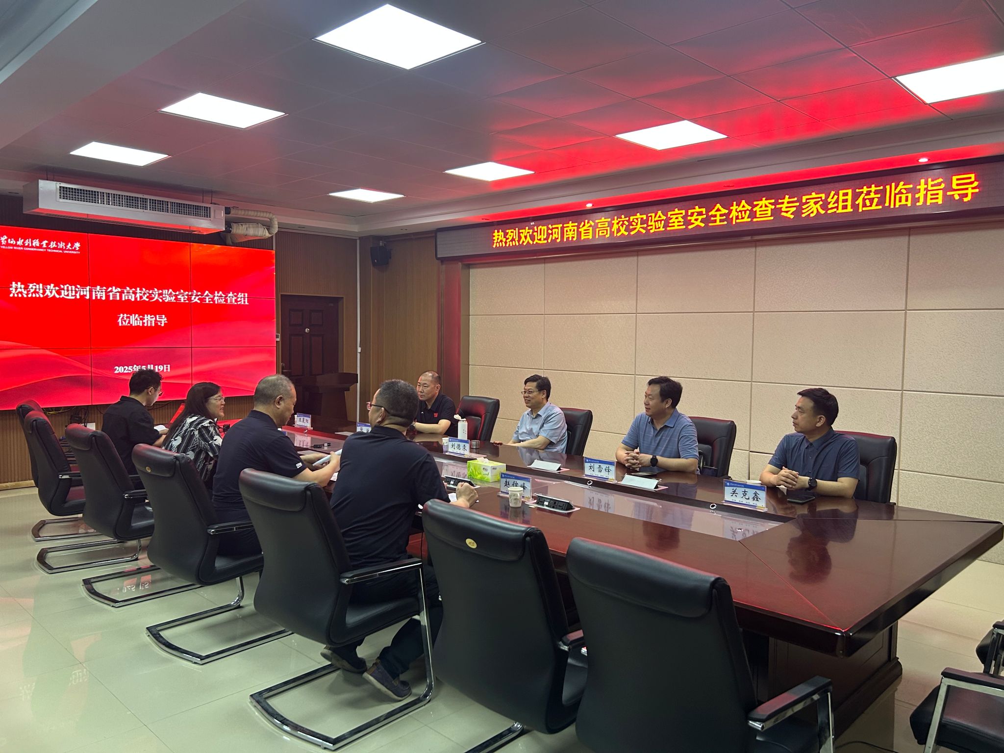 5月19日,2025年河南省教育厅高校实验室安全检查第六检查组组长刘德汞一行5人莅临我校开展实验室安全现场检查工作。党委副书记、工会主席杨士恒出席活动,教务处负责人和相关工作人员参加检查。