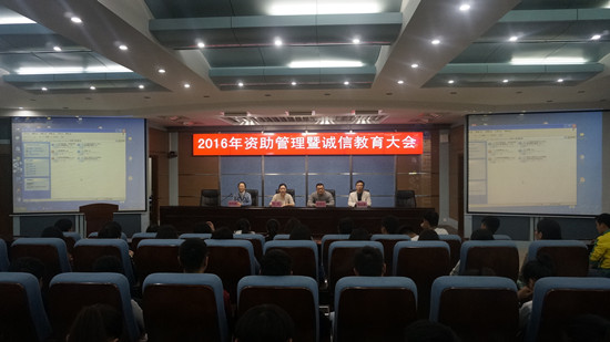 贷款圆梦助理想,还款争做诚信人。为加强学生诚信教育,培养大学生的诚信意识,落实好助贷联动、以助还贷的管理工作,信息工程系于10月20日中午13:00在3号实训楼学术报告厅隆重召开了资助管理暨诚信教育大会。本次会议由2015级辅导员蒋晓絮老师主持,系党总支副书记殷莺、分团委书记彭战松、2016级辅导员贾红军出席,2015级和2016级全体受奖助贷学生参加。