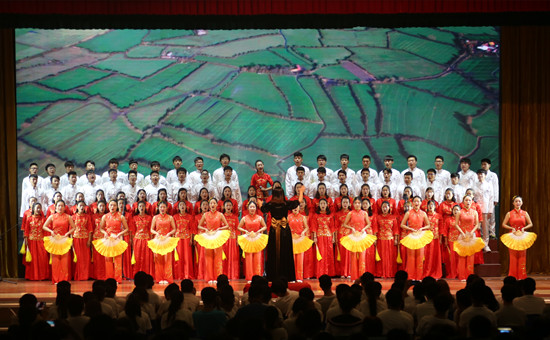 艺术系代表队演唱的《在希望的田野上》,体现了中华儿女播种希望,收获理想的喜悦,展现了祖国从一个辉煌走向另一个辉煌的发展历程。