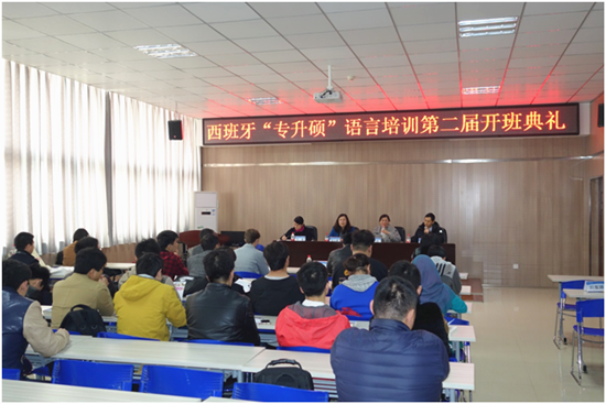 典礼上,项目主管曹荣铎老师简要介绍了现有项目的运行状况,展望了西班牙“专升硕”项目的美好前景。班主任杨阳老师对学生在校的学习生活提出了具体要求。学生代表做了励志发言,并对老师的辛勤培养表示感谢。国际教育学院院长陶永霞指出,国家一直提倡高校加强对外交流,提升高等教育国际化水平,西班牙“专升硕”项目对推动我校的国际化提供了一个良好平台;她寄语西语学习学生,要努力学习,要有恒心、信心,协调完成西语学习和专业学习两大任务,通过西班牙语的培训,能尽早到西班牙大学进行硕士学位的学习;最后,还强调了学生在学习生活中的注意事项及安全问题。