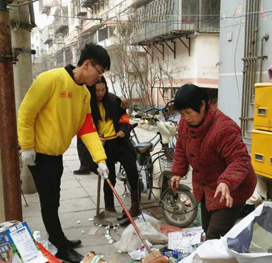 1213,按照校团委部署,我校“邢二朋志愿服务队”走上街头,深入社区开展国家文明城市创建知识宣传、核心价值观宣传单发放、环境卫生清洁、健康文化理念传播等活动,积极参与开封市国家文明城市创建。