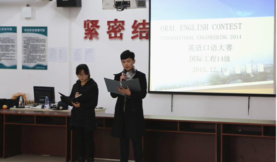 为提高学生英语学习积极性,检验学习效果,12月19日,水利工程学院国际工程专业2014级英语口语大赛如期举行。大赛邀请外教Robert、国际教育学院、环境与化学工程系等院系相关老师担任本次大赛的评委。