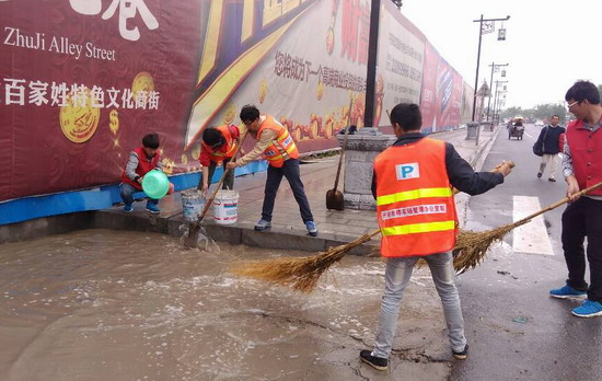 活动中,志愿者们主动为外地游客提供道路咨询、秩序维护、景点介绍、旅游路线指导等各项服务,真诚热情、贴心周到地为游客排忧解难,每天至少工作10个小时。52日的降雨,造成龙亭湖西侧道路严重积水,志愿者们不怕脏、不怕累,用脸盆、水桶等工具及时清理道路积水,方便游客通行。活动过程中,志愿者们只能在路旁简单地以盒饭、矿泉水等充饥,但大家都表示,能给游客提供一些帮助,能为开封创建国家文明城市尽点力,是一件非常快乐、有意义的事情。热情洋溢的志愿者们成为了各景区一道靓丽的风景线。