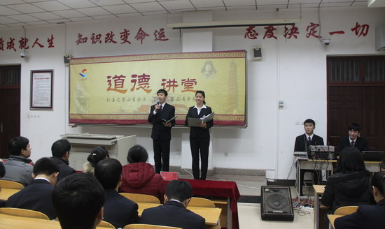 16日下午,由党委宣传部主办,旅游系承办的道德讲堂活动在JX6103举行。该系党总支书记焦红强、系副主任李冠军出席活动并为拾金不昧学生颁奖,该系分团委书记王忠伟、酒店教研室主任宋莎莎、辅导员教师及学生代表共100余人参加了本次活动。