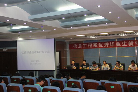 为加强对在校生的就业指导,帮助在校生提高就业质量、就业层次,解决学生在就业或专升本方面遇到的问题与困惑,在2014届毕业生即将毕业离校之际,610日中午13:00,信心工程系在学术报告厅举行了一场应届优秀毕业生就业经验报告会,会议由系党总支副书记殷莺主持,全体2012级学生及20132年制学生参加了会议。