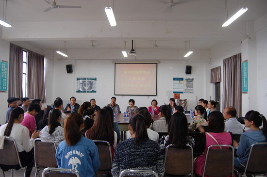 9月14日,管理系文秘2001级二十六名毕业生欢聚母校。周爱荣主任、罗朝峰书记等领导、教师组织了师生欢迎他们重回母校,并安排了一系列的活动。