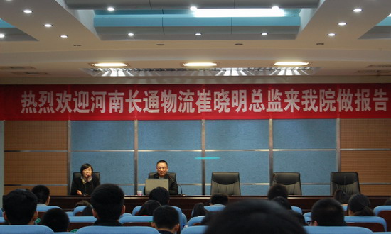 11月14日,河南省长通物流有限公司人力资源总监崔晓明应邀为管理系300多名师生做了一场生动的职业生涯规划专题报告会,管理系系主任周爱荣和物流管理教研室的全体教师参加了报告会。