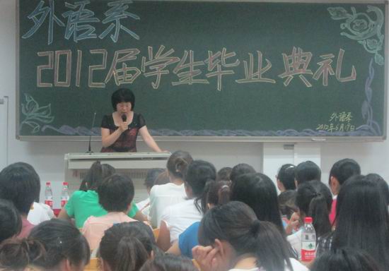 619下午,外语系2012届学生毕业典礼在教学楼6403室隆重举行。系领导王爱琴、关六三、王成伟等出席了此次典礼。系辅导员、优秀教师代表、2012届全体学生参加了此次典礼。