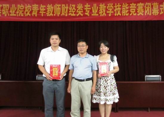 7月6日-9日,2012年首届河南省高等职业院校青年教师财经类专业教学技能竞赛决赛在郑州举行,我院财经系两位年轻教师在系主任张辉的带领下,代表我院参加了本次大赛获佳绩,其中保险实务专业教师王妍讲授的《寿险实务》课程荣获二等奖,会计(注册会计师方向)专业教师苏永彪讲授的《审计》课程荣获三等奖。