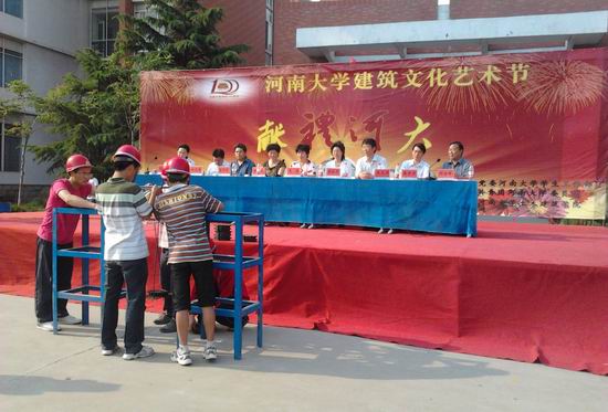 5月6日上午,由河南大学,开封大学、黄河水利职业技术学院三校联办的第二届结构设计大赛在河南大学土建学院广场上火热展开。